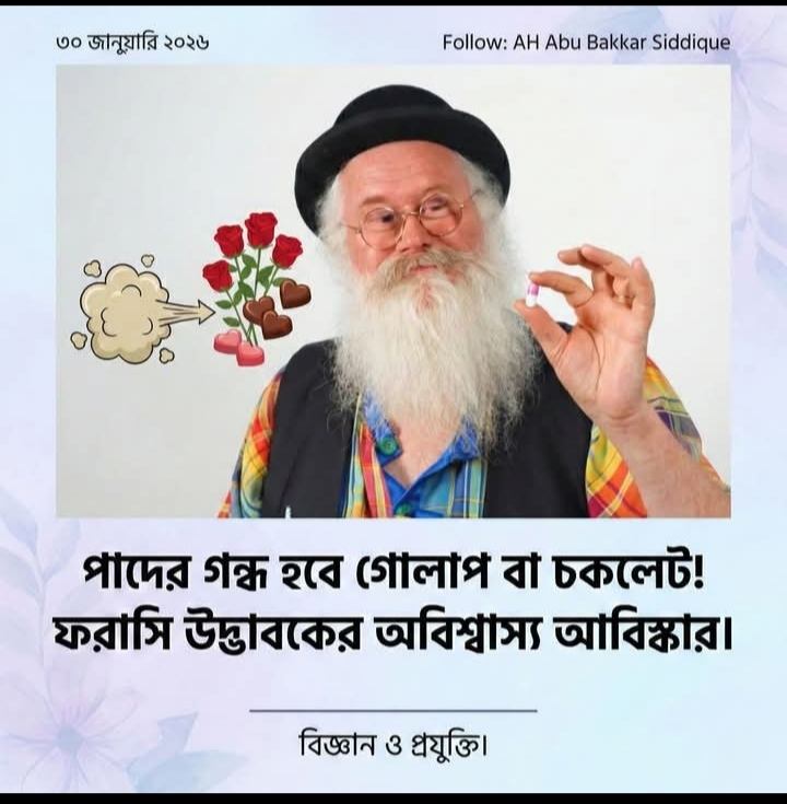 ফ্রান্সের ৬৫ বছর বয়সী উদ্ভাবক ক্রিশ্চিয়ান পঁচেভাল। এমন এক ভেষজ পিল তৈরি করেছেন, যা খেলে পেটের বাতাসের দুর্গন্ধ বদলে হয়ে যাবে গোলাপ, ভায়োলেট ফুল কিংবা চকলেটের মতো!