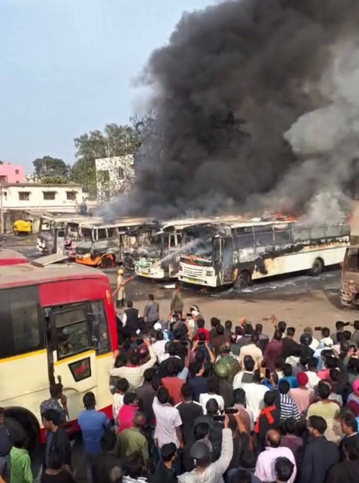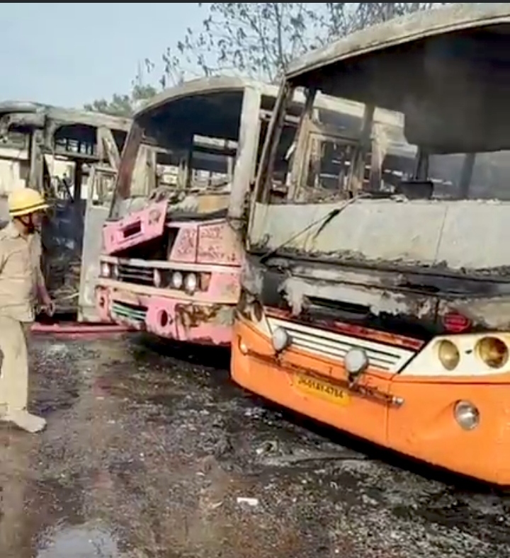 रांची: रांची जिले के कांटा टोली स्थित खाद गड़ा बस स्टैंड में अचानक से आग लग गई जिससे 6 से 7 बस पूरी तरह से जलकर खाक हो चुकी, आग से बस पूरी तरह से जल के खाक हो चुकी फायर ब्रिगेड की गाड़ी को सूचना मिलते हीं घटना स्थल पर पहुंची और आग बुझाने का कार्य शुरू किया गया, प्रत्यक्ष दर्शन की माने तो आग की लपटें इतनी तेज थी की कुछ ही मिनट में गाड़ी पूरी तरीके से धुकर जलने लगी, फिलहाल आग कैसे लगी कर्म का पता नहीं चल पाया है, सबसे बड़ी राहत की बात यह है कि इस घटना में किसी व्यक्ति के हताहत होने की कोई सूचना नहीं है फिलहाल स्थानीय पुलिस घटना कैसे घाटी कर्म की पुष्टि और जांच पड़ताल में जुटी हुई है।