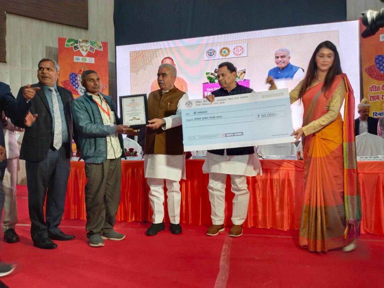 श्री नंदलाल पुत्र स्व. राम प्रसाद निवासी ग्राम देवरी जनपद सोनभद्र को पं० दीनदयाल उपाध्याय रेशम रत्न सम्मान 2025-26 की श्रेणी-1 (अ)-कोकून उत्पादन (किसानो द्वारा) में विशिष्ट योगदान के लिए प्रथम पुरस्कार माननीय श्री राकेश सचान (माननीय मंत्री, सूक्ष्म, लघु एवं मध्यम उद्यम, खादी एवं ग्रामोद्योग, रेशम, हथकरघा, वस्त्रोद्योग विभाग उ.प्र. के कर कमलों द्वारा मरकरी हॉल, इन्दिरा गांधी प्रतिष्ठान, गोमतीनगर, लखनऊ में मिला है।