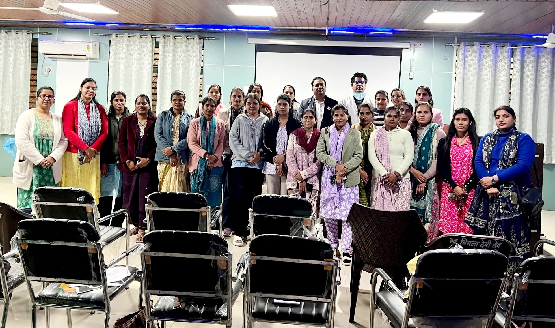 साथ ही सेमिनार हॉल में VIA प्रशिक्षण हेतु उपस्थित CHO प्रतिभागियों को पीएमओ डॉ. दिनेश वैष्णव, कैंसर नोडल अधिकारी डॉ. नरेश कुमार खत्री, उपनियंत्रक डॉ. मनीष वर्मा एवं डॉ. अनुपमा वर्मा (जिला समन्वयक – सर्वाइकल कैंसर) द्वारा कैंसर की जाँच, निदान, उपचार एवं रेफरल प्रक्रिया से संबंधित प्रशिक्षण प्रदान किया गया। इस दौरान यह भी बताया गया कि ओरल, ब्रेस्ट एवं सर्वाइकल—तीनों प्रमुख कैंसरों की समय पर पहचान से प्रभावी उपचार संभव है तथा इससे रोगियों के जीवन को बचाया जा सकता है।