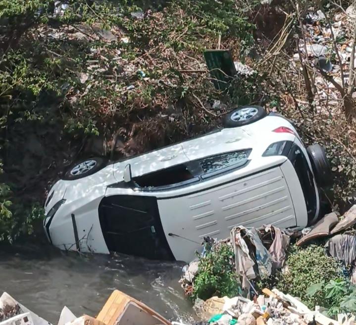 वानवडीतील गंगा सॅटॅलाइट येथे थरारक अपघात : फोर्ड इकोस्पोर्ट थेट ओढ्यात कोसळली, सुदैवाने जीवितहानी नाही