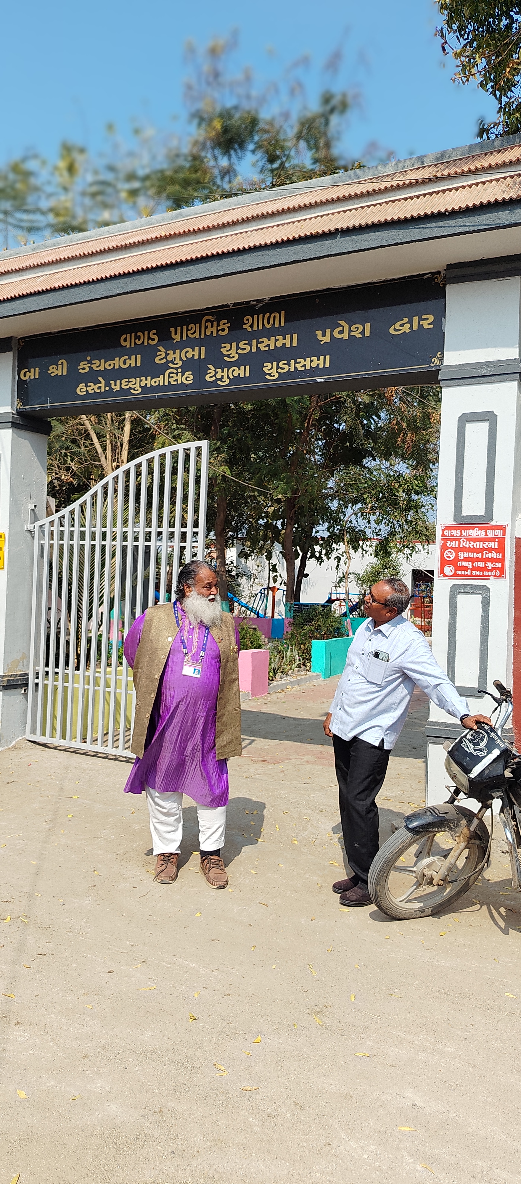 Vaghad di Dhanghuka, Gujarat — On Saturday, retired Assistant Engineer Naginbhai Chhotabhai Prajapati from the Space Applications Centre (SAC), Indian Space Research Organisation (ISRO), Department of Space, Government of India, visited Vaghad di Dhanghuka Primary School to deliver an interactive lecture to students.