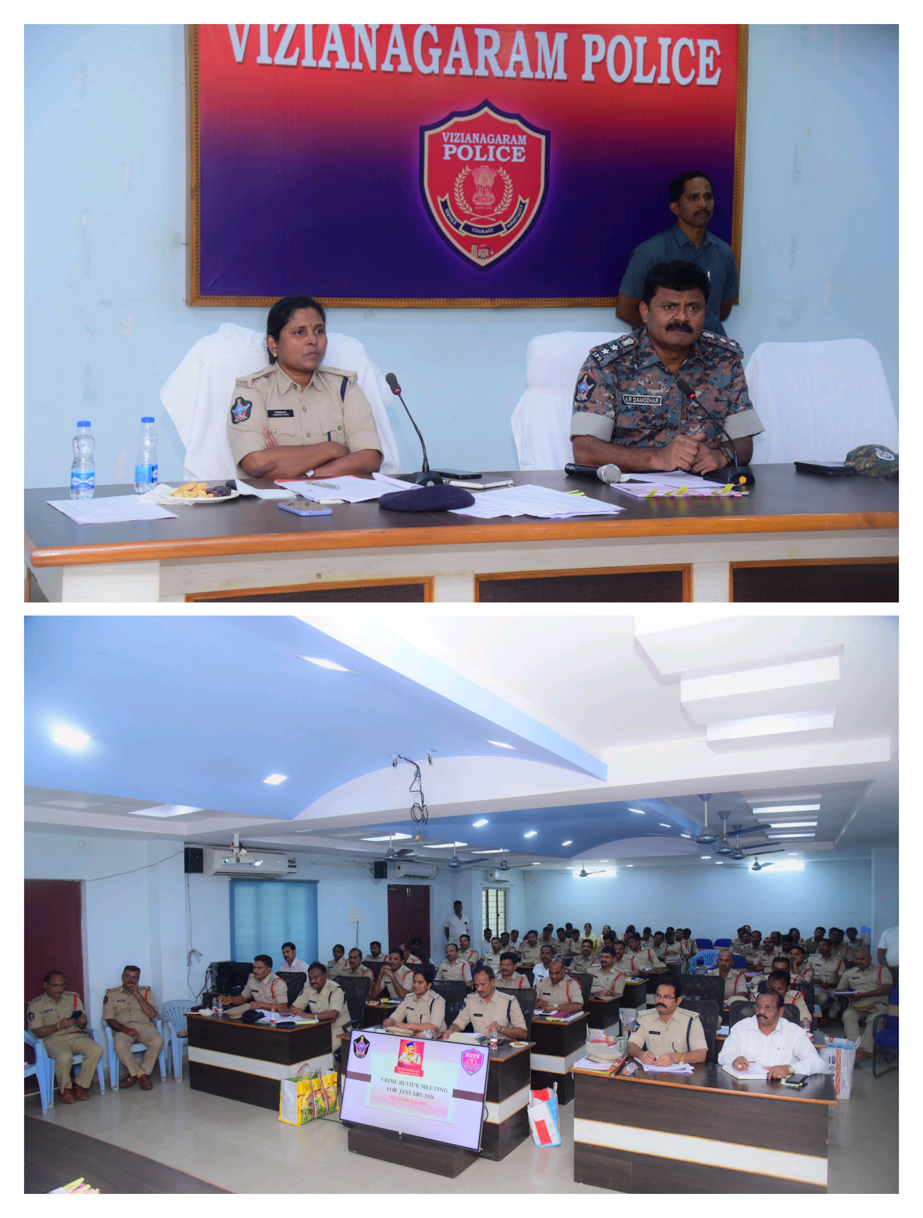 విజయనగరం జిల్లాలో వివిధ పోలీసు స్టేషనుల్లో పని చేస్తున్న పోలీసు అధికారులతో ఫిబ్రవరి 11న జిల్లా పోలీసు కార్యాలయంలో నేర సమీక్ష సమావేశాన్ని జిల్లా ఎస్పీ ఎ.ఆర్.దామోదర్ నిర్వహించి, దర్యాప్తులో ఉన్న గ్రేవ్, నాన్ గ్రేవ్, ఎన్.డి.పి.ఎస్., పోక్సో, అట్రాసిటీ, మిస్సింగు, రోడ్డు ప్రమాద కేసులను, సోషల్ మీడియా కేసులను, హిస్టరీ షీట్లు ను సమీక్షించారు.