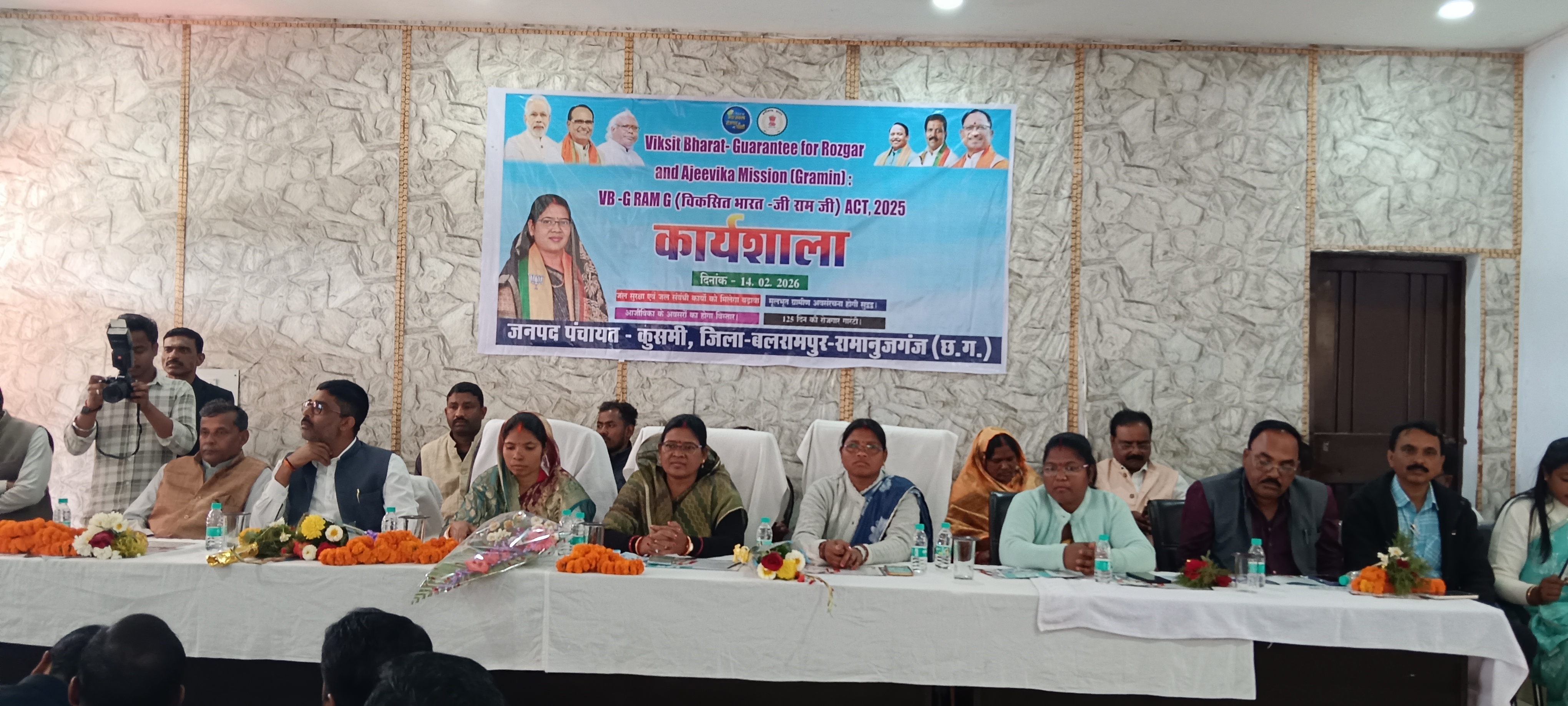 जिला बलरामपुर के कुसमी जनपद पंचायत के सभागार में विकसित भारत जी राम जी योजना के अंतर्गत एक विस्तृत कार्यशाला का आयोजन किया गया। कार्यक्रम में मुख्य अतिथि के रूप में सामरी विधायक उद्देश्वरी पैकरा उपस्थित रहीं। कार्यशाला का उद्देश्य ग्रामीण विकास को गति देना तथा शासन की योजनाओं को जमीनी स्तर पर प्रभावी ढंग से क्रियान्वित करना रहा। कार्यक्रम का शुभारंभ अतिथियों द्वारा दीप प्रज्ज्वलन के साथ किया गया। इसके पश्चात संबंधित विभागों के अधिकारियों ने योजना की रूपरेखा, उद्देश्यों एवं क्रियान्वयन प्रक्रिया की विस्तृत जानकारी प्रस्तुत की।