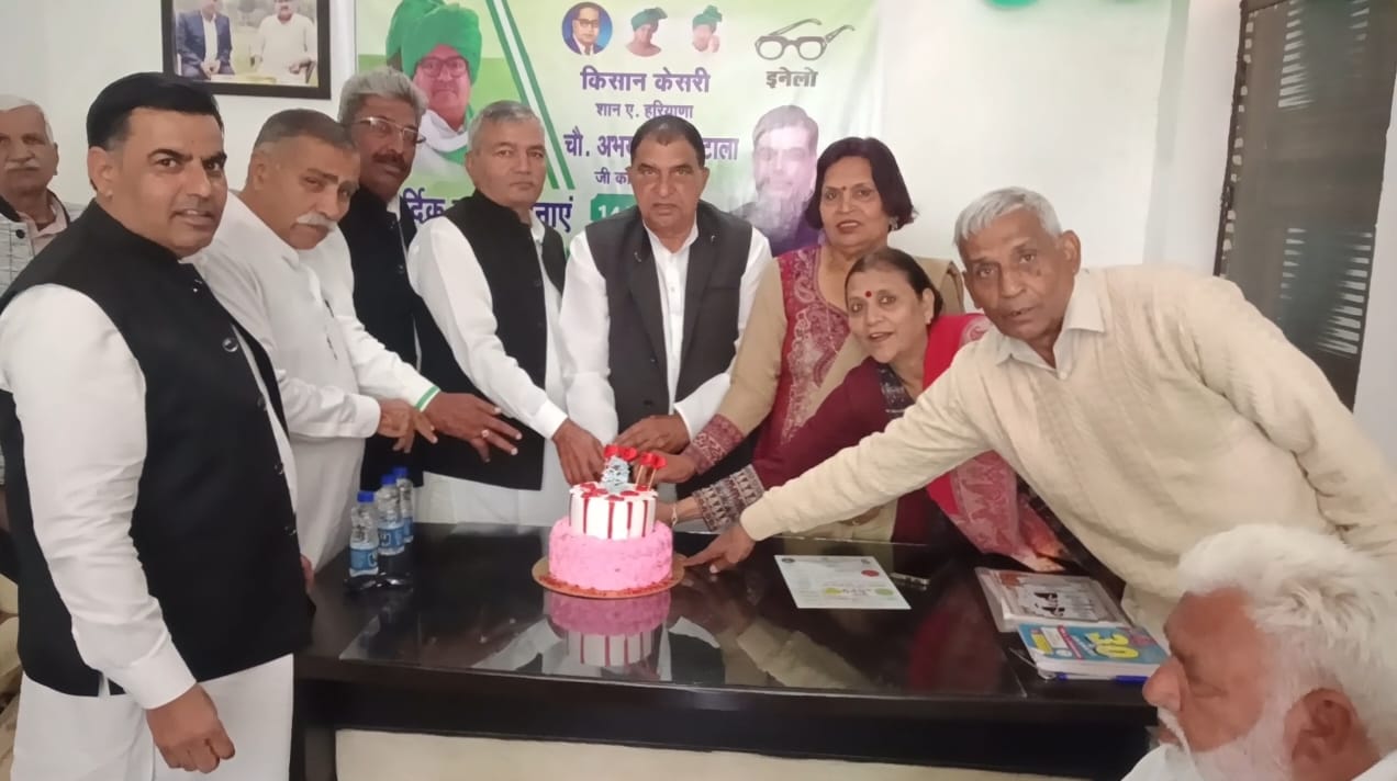इनैलो कार्यकर्ताओं ने किसान केसरी चौ.अभय सिंह चौटाला का जन्म दिन केक काटकर मनाया