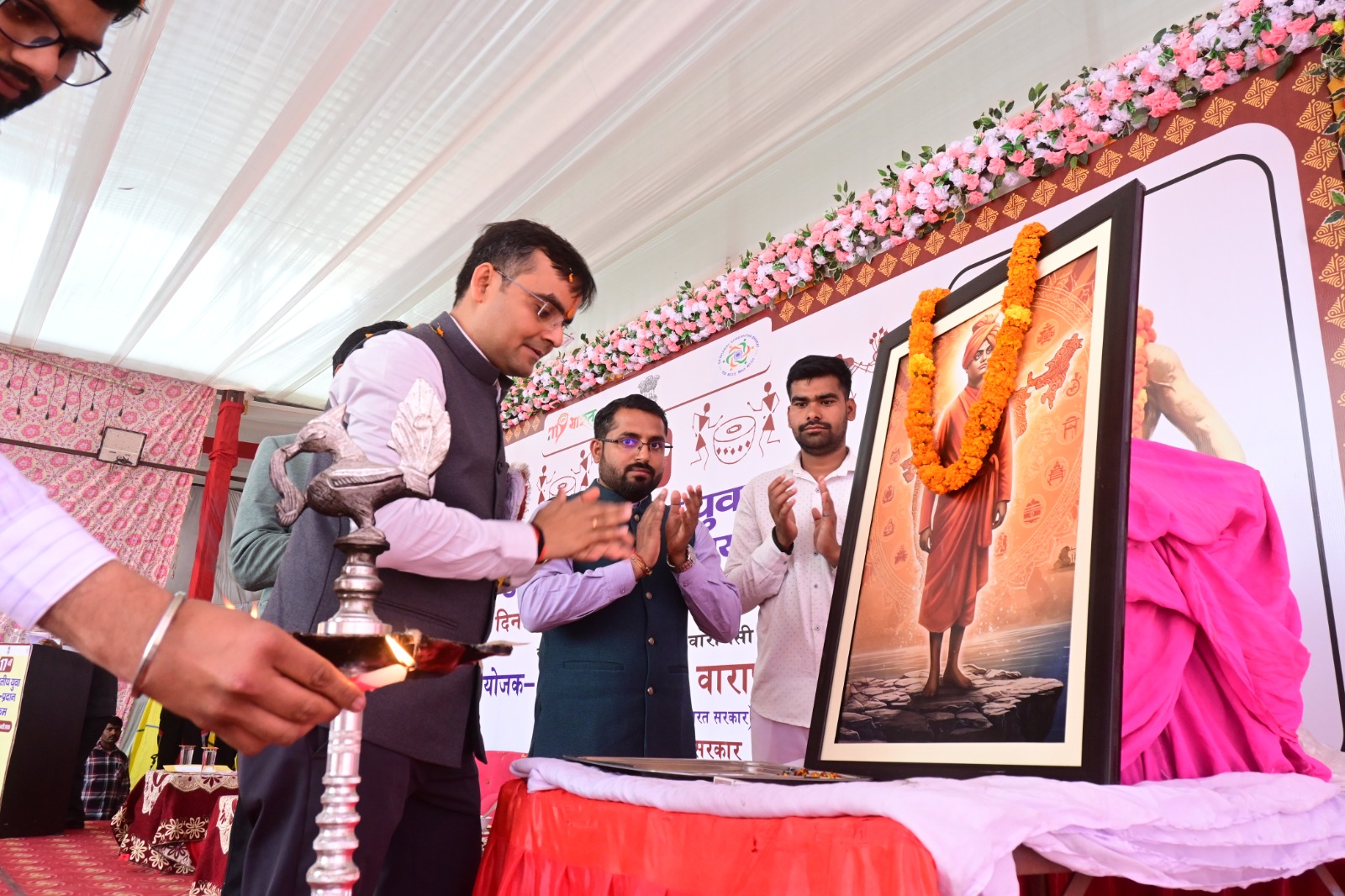 वाराणसी। मेरा युवा भारत,वाराणसी,युवा कार्यक्रम एवं खेल मंत्रालय, भारत सरकार एवं गृह मंत्रालय, भारत सरकार के संयुक्त तत्वावधान में आयोजित सात दिवसीय 17वाँ जनजातीय युवा आदान-प्रदान कार्यक्रम शनिवार को अपने तृतीय दिवस पर गरिमामय, प्रेरणादायी एवं ऐतिहासिक वातावरण में संपन्न हुआ। कार्यक्रम में जिलाधिकारी सत्येन्द्र कुमार ने मुख्य अतिथि के तौर पर प्रतिभाग किया। उन्होंने विधिवत दीप प्रज्ज्वलन एवं माल्यार्पण कर कार्यक्रम का शुभारंभ किया।