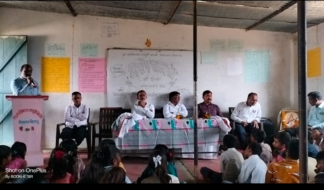 धोडप बु.येथील स्व नरसिंगराव बोडखे विद्यालयातील इयत्ता दहावीच्या 2025-26 च्या विद्यार्थ्यांना निरोप समारंभाचा कार्यक्रम 17 फेब्रुवारी 2026 रोजी उत्साहात पार पडला. यावेळी कार्यक्रमाचे अध्यक्ष म्हणून संस्थेचे अध्यक्ष रवींद्र भाऊ गायकवाड साहेब, प्रमुख पाहुणे म्हणून शेषराव पाटील कनिष्ठ महाविद्यालयाचे माजी प्राचार्य सारंगधर गोटे सर, संस्थेचे सचिव संतोषराव गायकवाड साहेब, मुख्याध्यापक सज्जनराव बाजड सर, जि.प.प्राथमीक शाळेचे मुख्याध्यापक भुसारी सर ,प्राध्यापक तुकाराम वाघ यांची प्रमुख उपस्थिती लाभली होती. दीप प्रज्वलन व उपस्थित मान्यवरांच्या सत्कारानंतर रंगभरण कला स्पर्धेमध्ये यश मिळवलेल्या गुणवंत विद्यार्थ्यांचा व कलाशिक्षक अनंत बोडखे यांचा मान्यवरांच्या हस्ते प्रशस्तीपत्र देऊन गौरव करण्यात आला.
