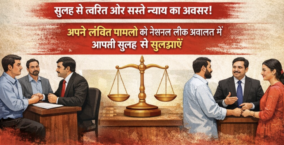 नेशनल लोक अदालत का उद्देश्य आपसी सहमति से विवादों का त्वरित एवं सरल समाधान कराना है, जिससे समय और धन दोनों की बचत हो तथा न्यायालयों में लंबित प्रकरणों की संख्या में कमी आए।