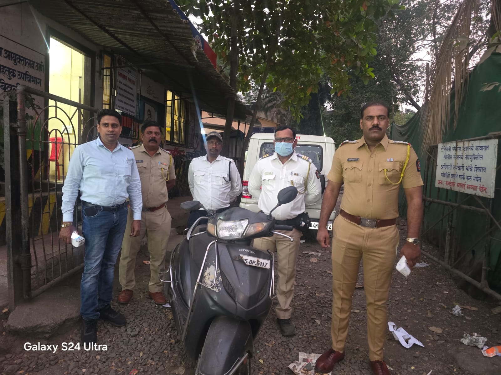 माननीय वरिष्ठांच्या आदेशानुसार पो. हवा. क्र. ४३७० पगारे हे संबंधित ठिकाणी वाहतूक नियंत्रण व कारवाई करीत असताना रोडवर वाहतुकीस अडथळा निर्माण करून उभी असलेली एक्टिवा दुचाकी (क्र. MH-05/DP-6117) आढळून आली. सदर वाहन संशयास्पद वाटल्याने त्यांनी त्याबाबत सखोल पडताळणी केली.