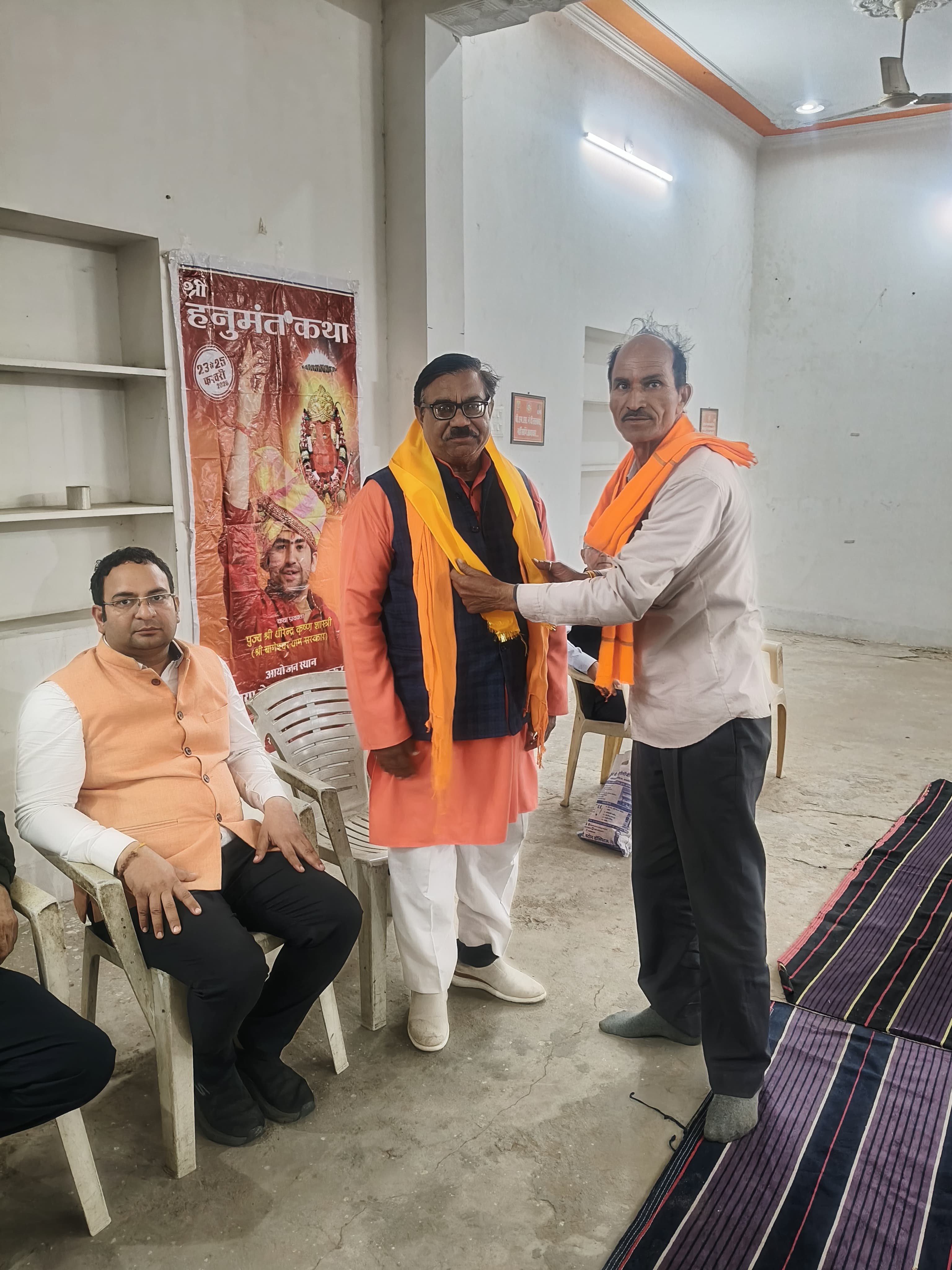 महामंडलेश्वर श्री नर्बदा शंकर पुरी जी महाराज को 23 से 25 फरवरी तक पुष्कर में आयोजित होने वाली बागेश्वर धाम के पंडित धीरेन्द्र कृष्ण शास्त्री जी महाराज की हनुमंत कथा का आमंत्रण भी प्रदान किया गया।इस अवसर पर साध्वी गीतांजलि जी, विश्व हिंदू परिषद के सह मंत्री शशि प्रकाश इंदौरिया, डॉ कुलदीप शर्मा, देवेन्द्र त्रिपाठी, विजय कुमार शर्मा, तरुण वर्मा, अशोक पंसारी, राजेंद्र प्रसाद मित्तल, डॉ रामनिवास शर्मा, प्रकाश खन्ना, संजना खटीक तथा तपस्वी गायत्री शर्मा सहित अनेक लोग उपस्थित रहे।