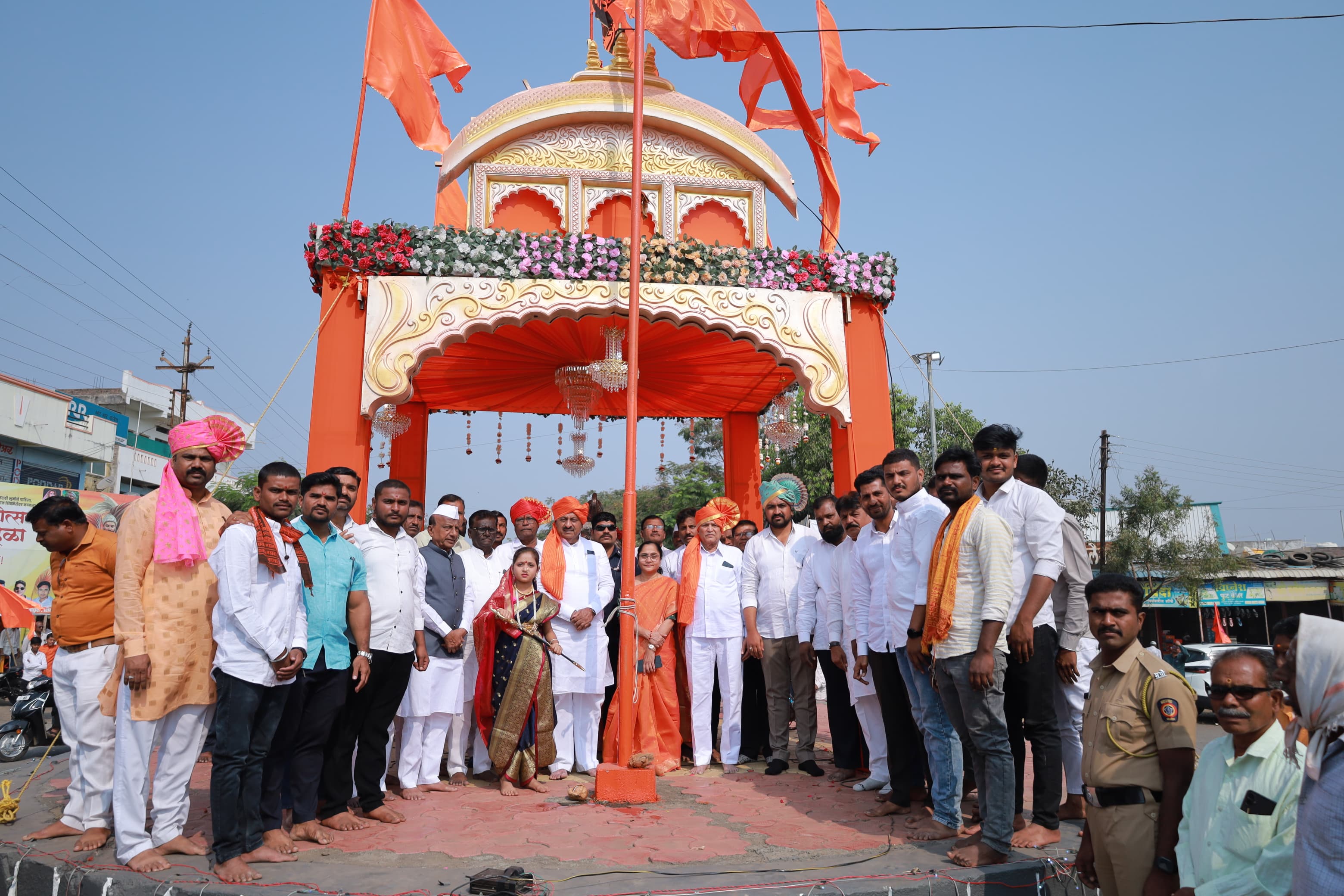 छत्रपती शिवरायांच्या प्रतिमेचे पुजन व ध्वजारोहन सहकार मंत्री बाबासाहेब पाटील यांच्या हस्ते करण्यात आले यावेळी उपविभागीय अधिकारी मंजुषा लटपटे उपस्थित होत्या .