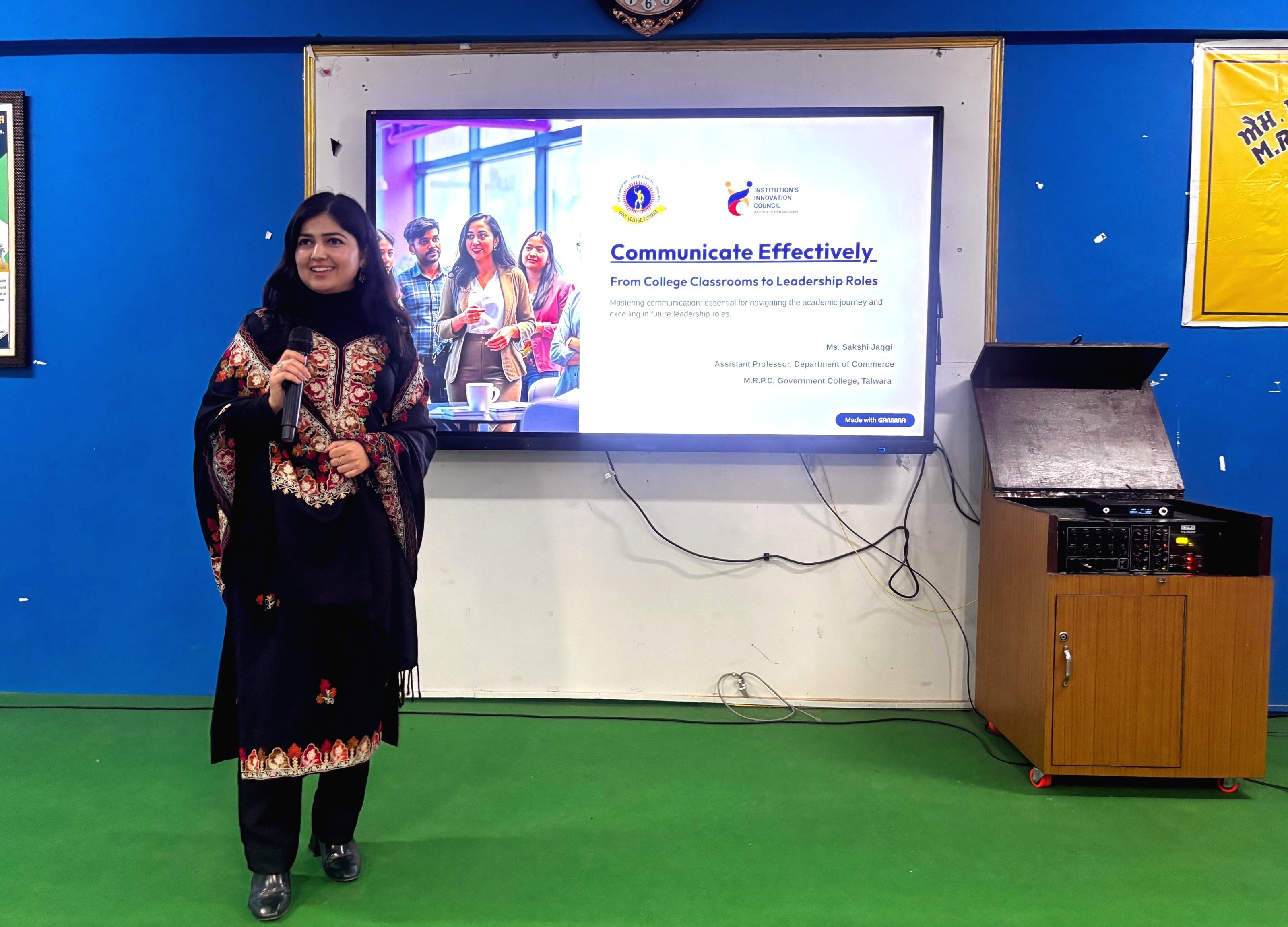 She elaborated on practical strategies to improve verbal and non-verbal communication, active listening, clarity of expression, confidence building, and adaptability in diverse professional situations. The session was interactive, engaging students in discussions and real-life examples.