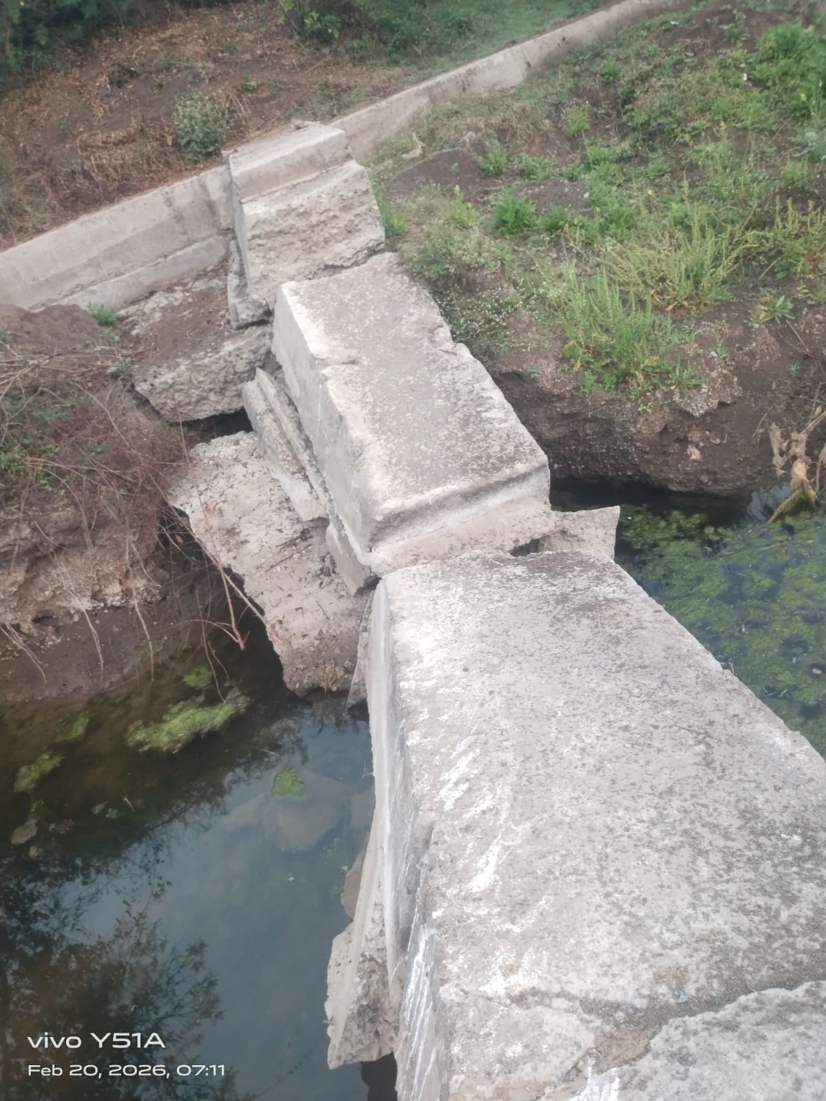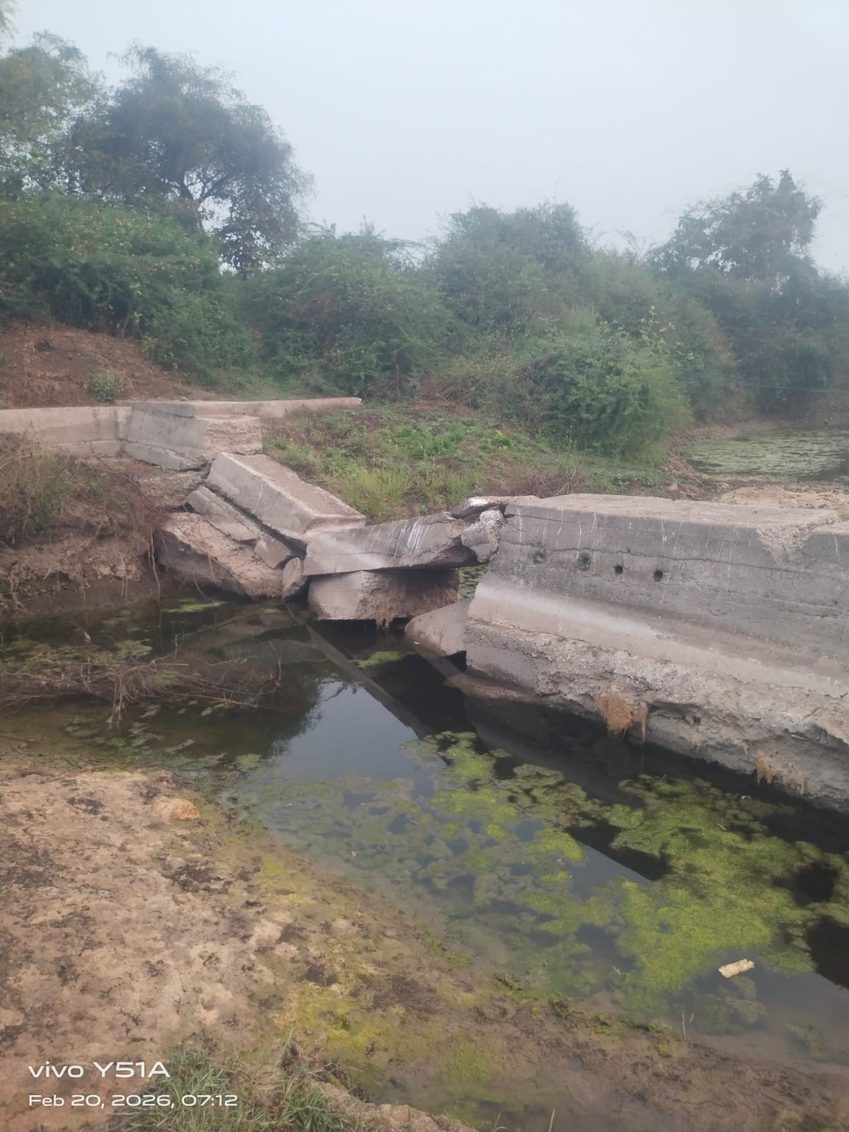 ग्रामीणों का कहना है कि डेम का निर्माण हुए अभी कुछ ही महीने हुए थे, लेकिन पहली ही बारिश और सामान्य जलभराव में इसकी दीवारें चटक गईं। तस्वीर में दिखाई दे रहा है कि कंक्रीट की परत अलग होकर गिर चुकी है और बीच का स्लैब टूटकर नीचे लटक गया है — जो निर्माण गुणवत्ता पर सीधा सवाल खड़ा करता है।