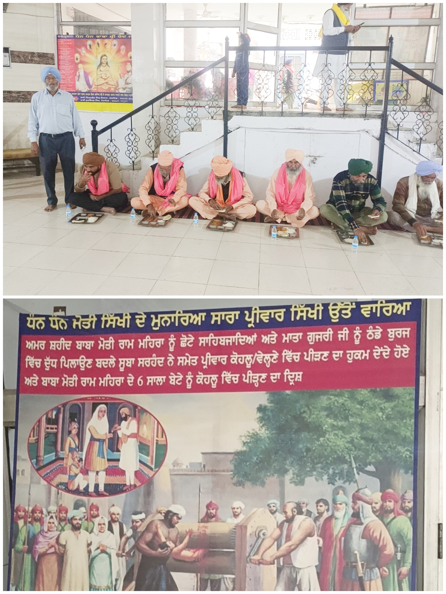 ਬੁਲਾਰਿਆਂ ਨੇ ਬਾਬਾ ਮੋਤੀ ਰਾਮ ਮਹਿਰਾ ਜੀ ਵੱਲੋਂ ਮਾਤਾ ਗੁਜਰੀ ਜੀ ਅਤੇ ਛੋਟੇ ਸਾਹਿਬਜ਼ਾਦਿਆਂ ਦੀ ਕੀਤੀ ਗਈ ਨਿਸ਼ਕਾਮ ਸੇਵਾ ਅਤੇ ਉਨ੍ਹਾਂ ਦੀ ਮਹਾਨ ਕੁਰਬਾਨੀ 'ਤੇ ਚਾਨਣਾ ਪਾਇਆ। ਉਨ੍ਹਾਂ ਕਿਹਾ ਕਿ ਬਾਬਾ ਜੀ ਦੀ ਸ਼ਹਾਦਤ ਸਿੱਖ ਇਤਿਹਾਸ ਦਾ ਉਹ ਸੁਨਹਿਰੀ ਪੰਨਾ ਹੈ, ਜੋ ਸਾਨੂੰ ਹਮੇਸ਼ਾ ਜ਼ੁਲਮ ਵਿਰੁੱਧ ਖੜ੍ਹਨ ਅਤੇ ਸੇਵਾ ਭਾਵਨਾ ਦੀ ਪ੍ਰੇਰਣਾ ਦਿੰਦਾ ਰਹੇਗਾ।