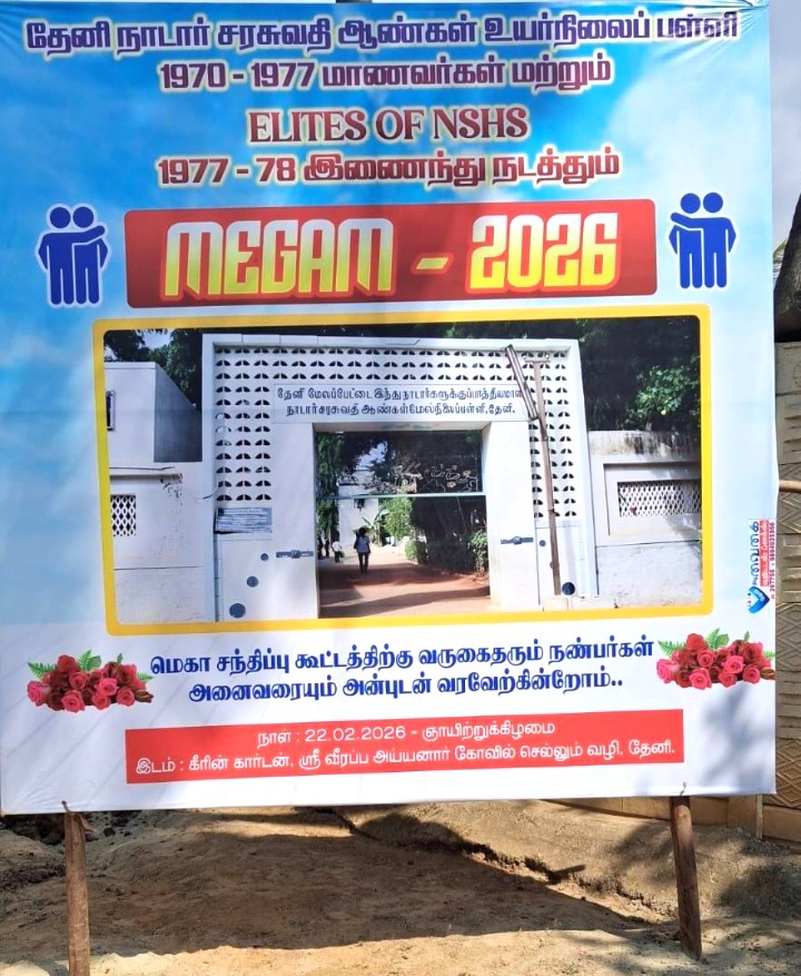 தேனி மாவட்டம், தேனி நாடார் சரசுவதி ஆண்கள் உயர்நிலைப் பள்ளியின் முன்னாள் மாணவர்கள் ( ELITES OF THENI NSHS 1977-78 ) முன்னின்று நடத்தும் மேகம் - 2026