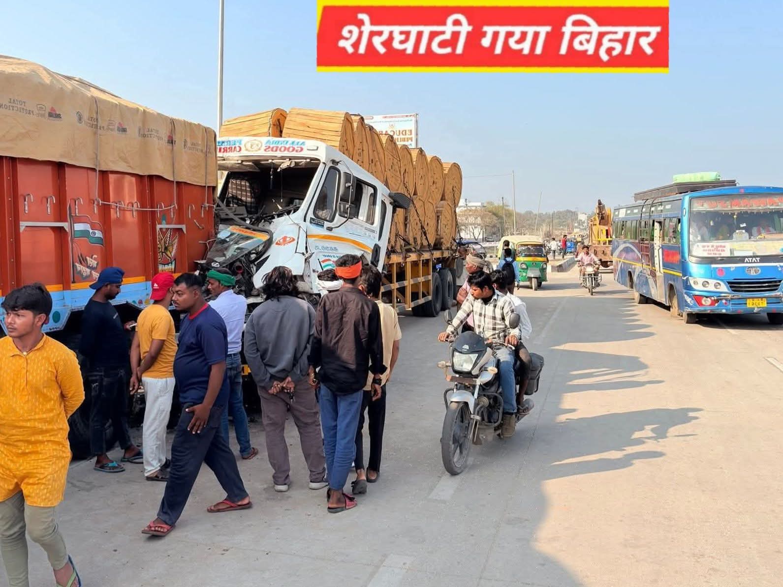 #BreakingNews #शेरघाटी में अभी अभी पुल पर भीषण सडक हा@दसा. हाईवे के किनारे खड़ी ट्रक में बेकाबू ट्रेलर ने भारी ट@क्कर. ट्रेलर का चालक केबिन में बुरी तरह फंसा. स्थानीय लोगों की मदद से उसे बाहर निकालकर #अनुमंडलीय अस्पताल पहुँचाया. सूचना मिलते ही मौके पर पहुंची #शेरघाटी थाने की पुलिस.