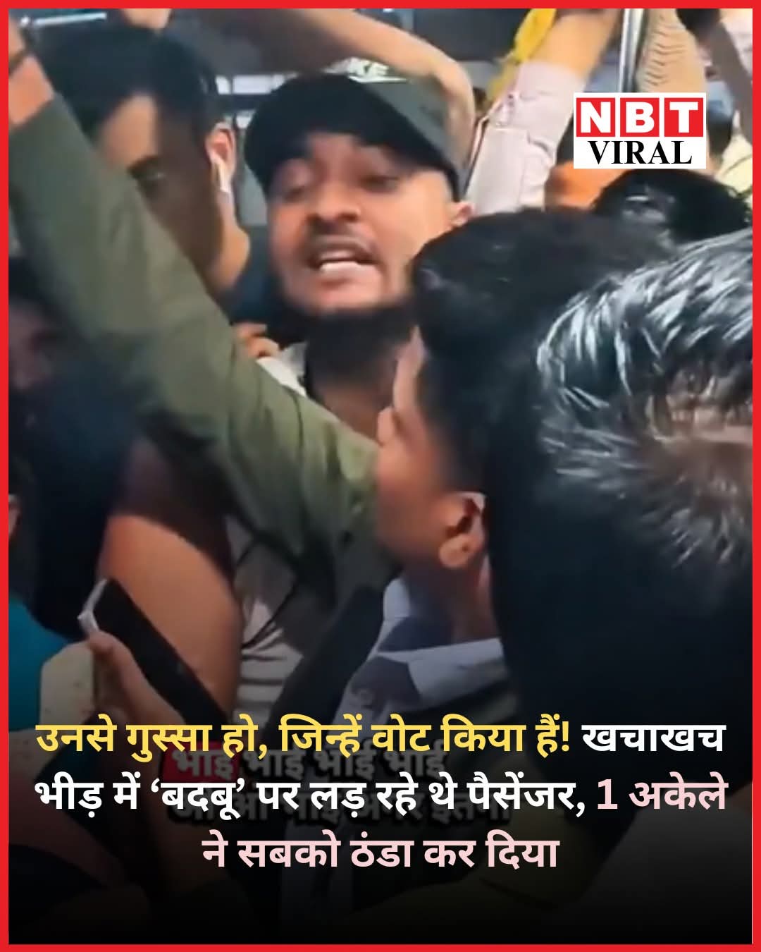 मुंबई लोकल में सफर के दौरान लोगों को खचाखच भीड़ में भी आपस में लड़ता देख बंदे ने उन्हें अच्छे से लताड़ लगाई है। बंदे ने उन्हें शांत कराने के दौरान ‘उन्हें गुस्सा दिखाओ, जिन्हें वोट किया है’ जैसी बातें बोली है। जिसके चलते वीडियो इंटरनेट पर वायरल हो गया है।