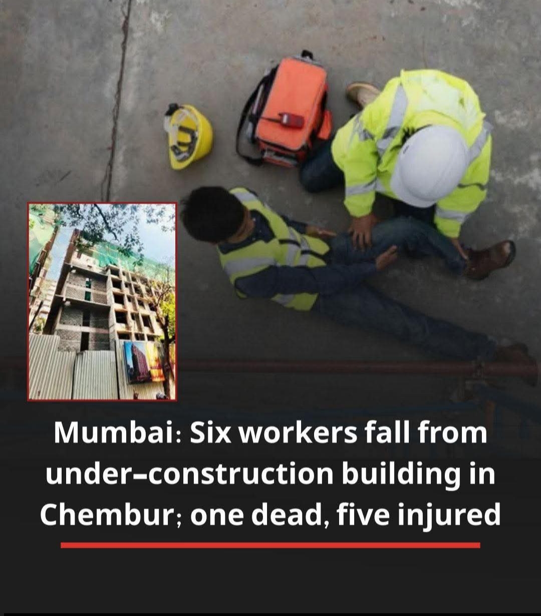 A tragic construction accident in Subhash Nagar, Chembur, claimed the life of 55-year-old Ramanejenellu Hanumanta Deshpogu after he and five others fell from the sixth floor of an under-construction building on Saturday morning around 10 am.The workers were constructing a parking loft wall on the sixth floor when six of them fell.