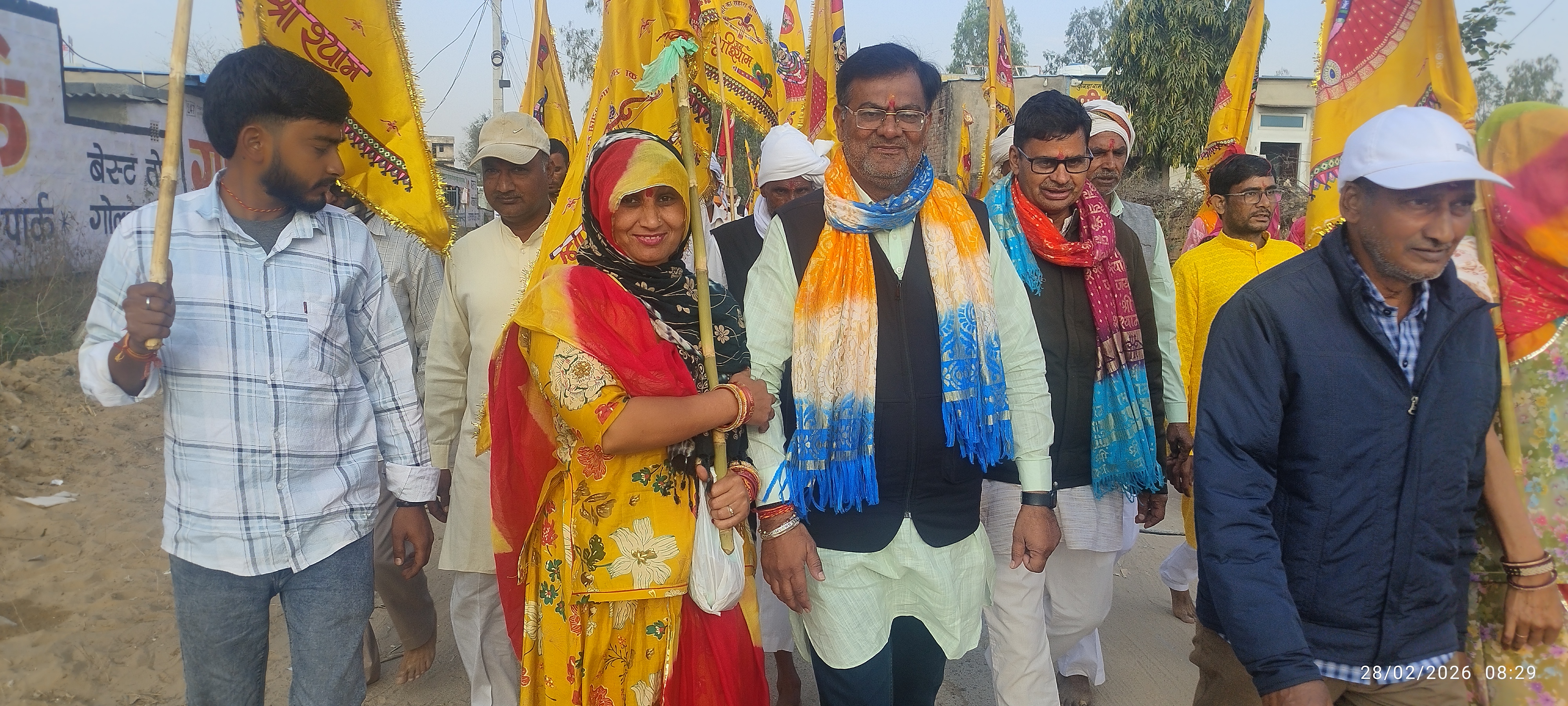 खाटू श्याम जी मंदीर मे बाबा श्याम का निशान चढ़ाया, थिरपाली बड़ी, श्याम मंदीर से बड़ी संख्या में श्याम भक्त बाबा श्याम का निशान लेकर पहुँचे थे,