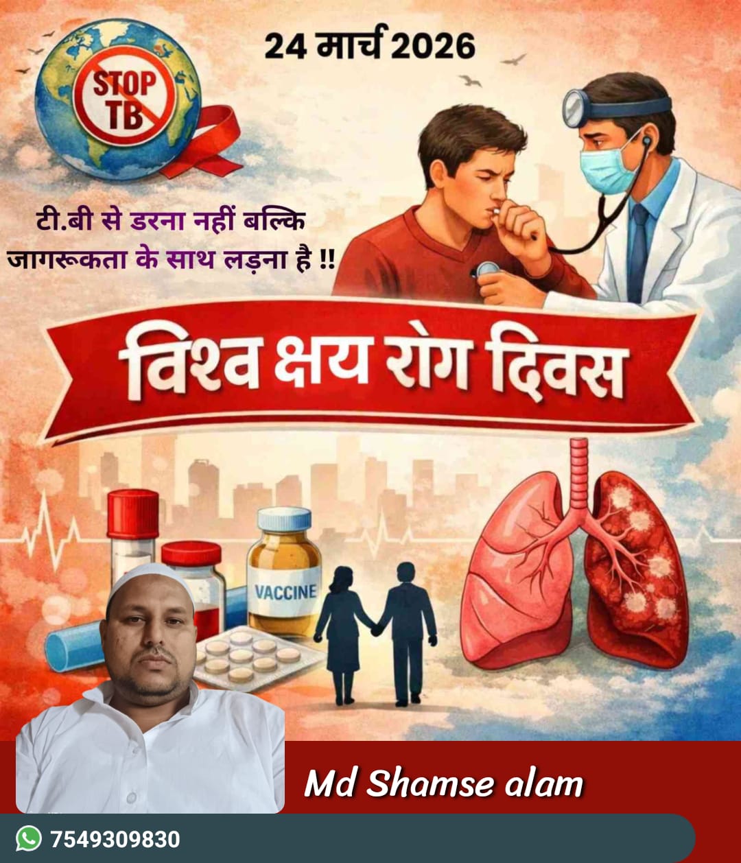 24 मार्च विश्व क्षय दिवस को दुनिया से TB. को मिटाने का संकल्प लेना है।