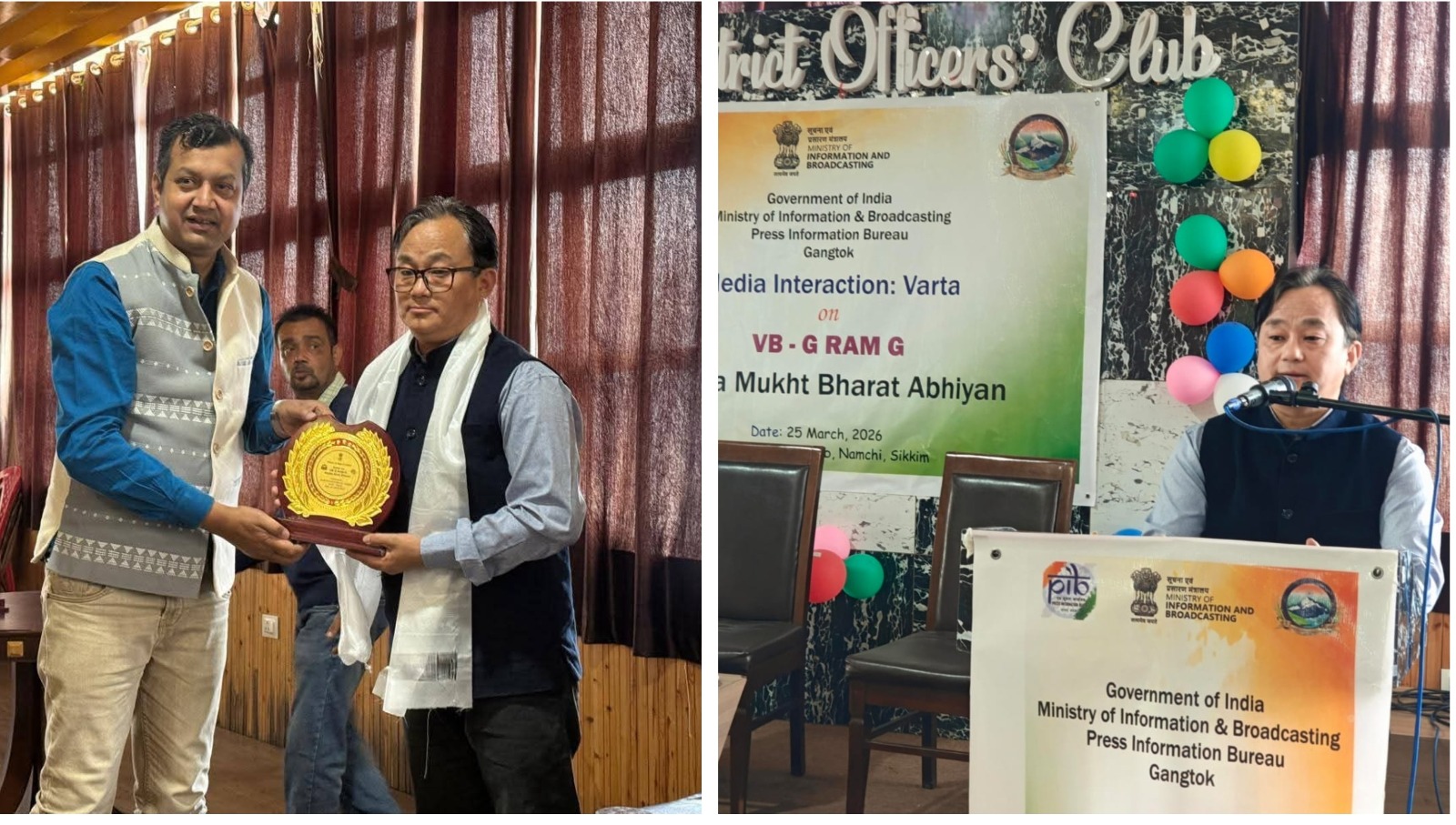 सरकार और मीडिया के बीच संवाद को और सशक्त बनाने की दिशा में प्रेस सूचना ब्यूरो (PIB), गंगटोक ने नामची में एक दिवसीय मीडिया संवाद कार्यक्रम ‘वार्ता’ का आयोजन किया। इस सत्र का मुख्य फोकस विकसित भारत गारंटी (रोजगार एवं आजीविका मिशन ग्रामीण अधिनियम, 2025) और नशा मुक्त भारत अभियान पर रहा।