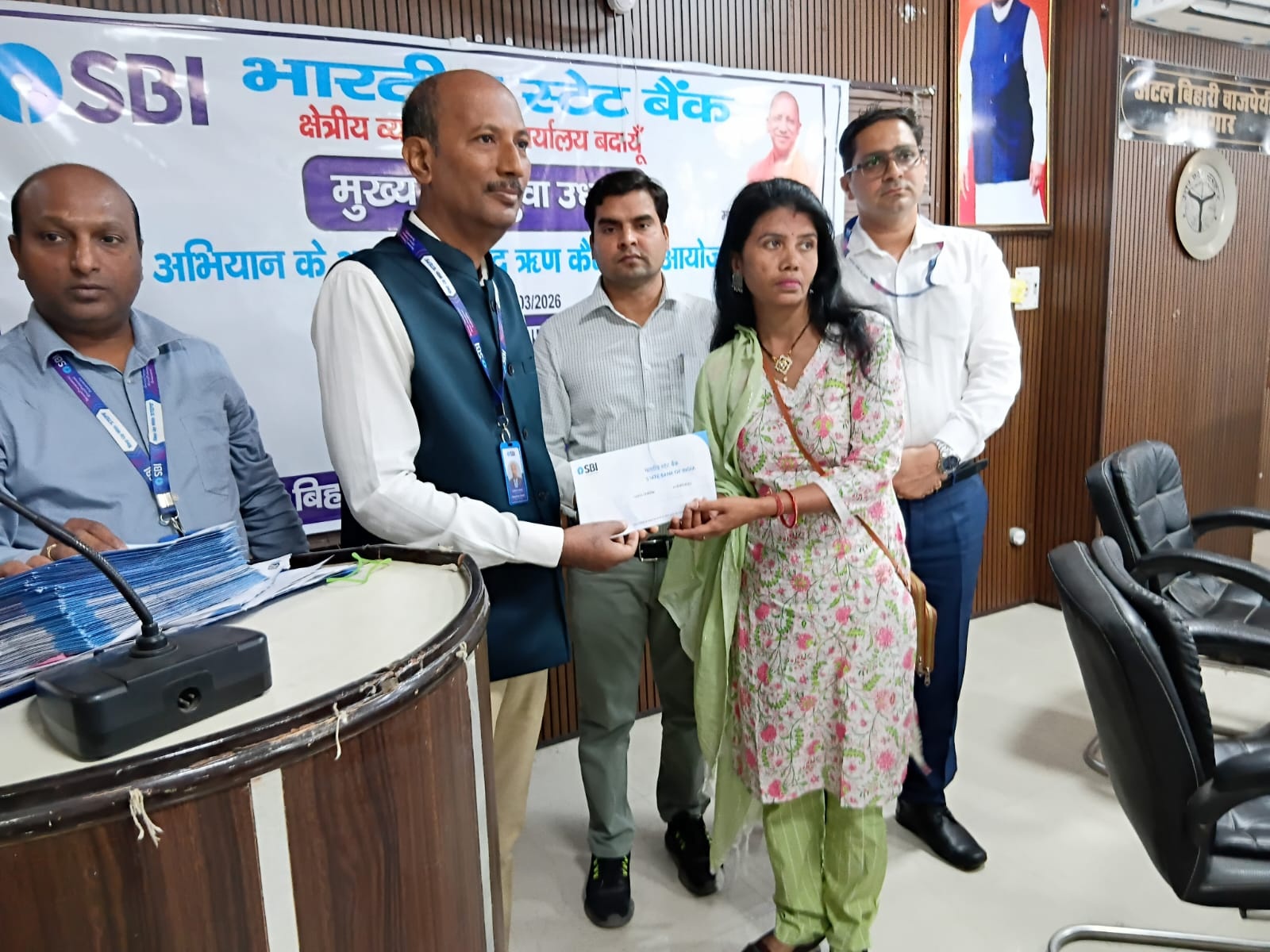 बदायूँ: 25 मार्च। मुख्यमंत्री युवा उद्यमी विकास अभियान के अंतर्गत बुधवार को कलेक्ट्रेट स्थित अटल बिहारी बाजपेई सभागार में प्रातः 11 बजे से 12 बजे तक वृहद ऋण शिविर का आयोजन किया गया। शिविर की अध्यक्षता जिलाधिकारी के निर्देश पर अपर जिलाधिकारी वित्त एवं राजस्व वैभव शर्मा द्वारा की गई। कार्यक्रम का शुभारंभ अपर जिलाधिकारी द्वारा दीप प्रज्वलित कर किया गया।