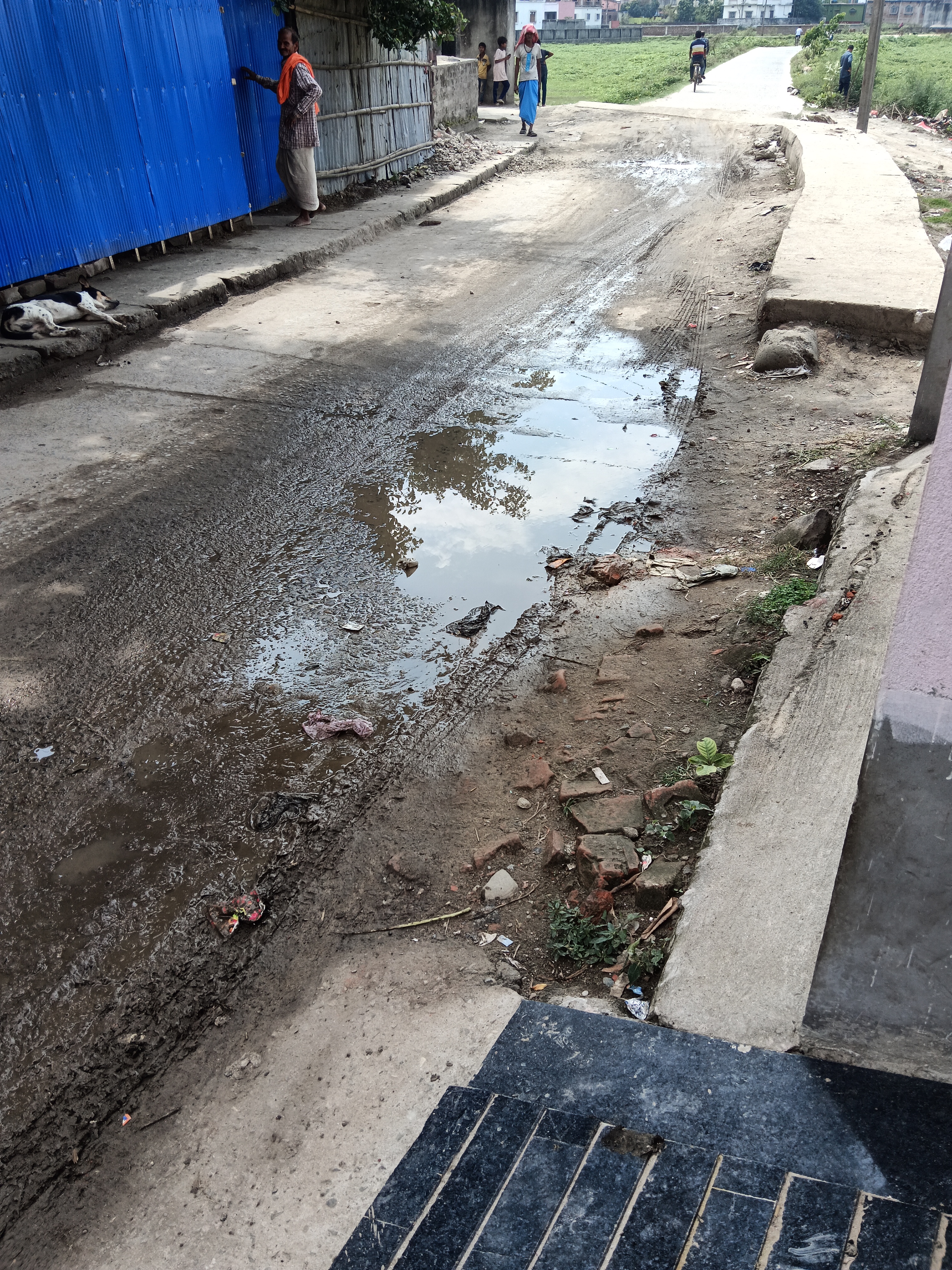স্থানীয় এলাকার একটি গুরুত্বপূর্ণ সড়ক দীর্ঘদিন ধরে বেহাল অবস্থায় পড়ে আছে। সামান্য বৃষ্টি হলেই রাস্তায় পানি জমে জলাবদ্ধতার সৃষ্টি হচ্ছে। ছবিতে দেখা যাচ্ছে, রাস্তার মাঝখানে বড় আকারের কাদা ও পানি জমে রয়েছে, যা চলাচলের জন্য মারাত্মক ঝুঁকিপূর্ণ।