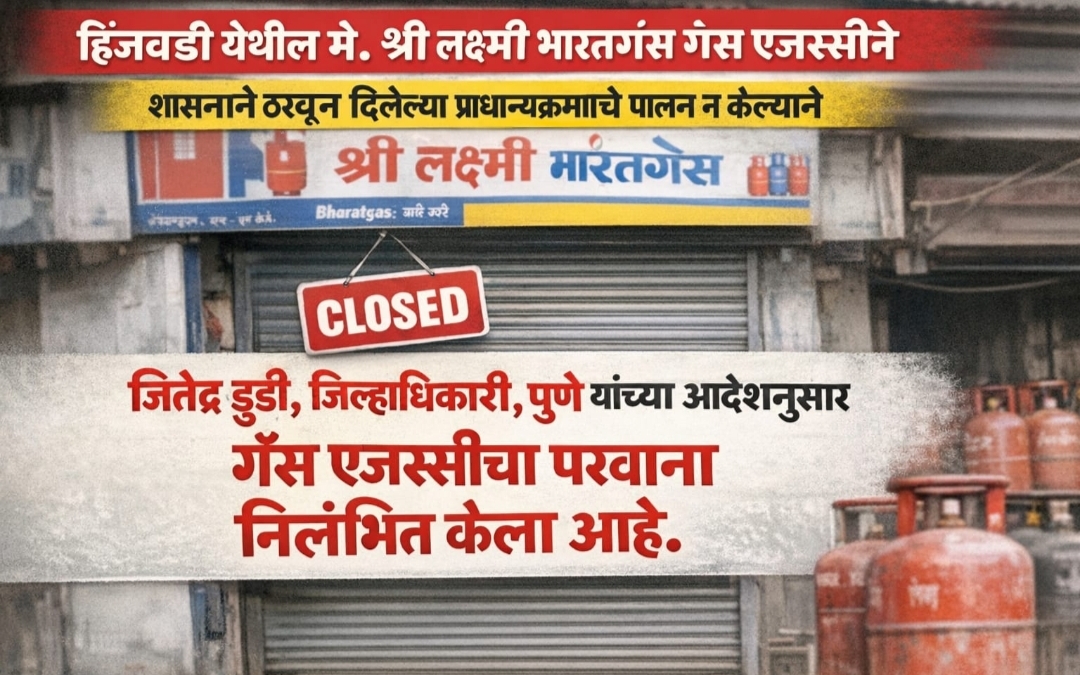 पुणे जिल्हा अधीकारी श्री जितेंद्र हुडी साहेब यांचे आदेशाने भारत गॅस एजन्सी परवना रद्द