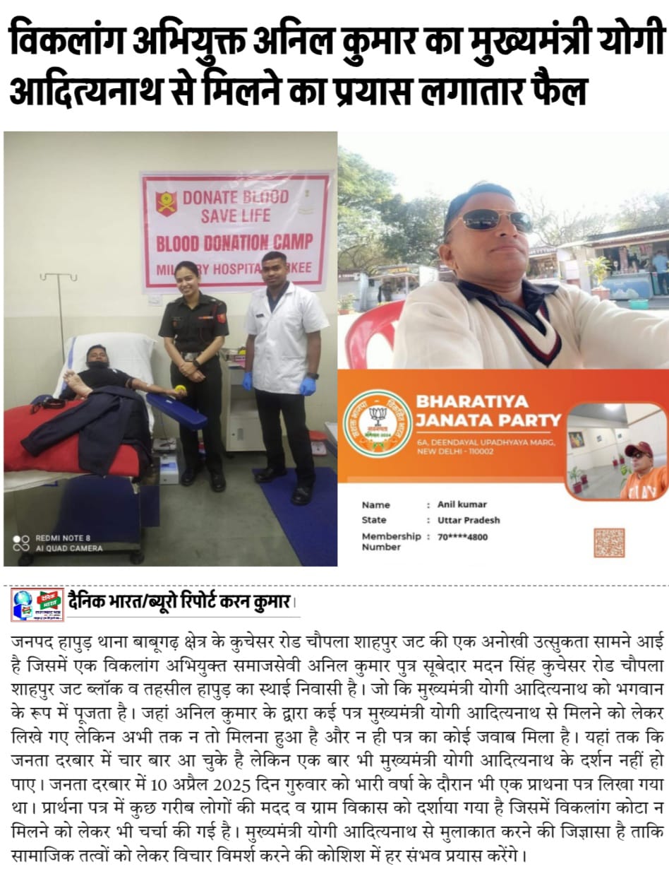 *рд╡рд┐рдХрд▓рд╛рдВрдЧ рдЕрднрд┐рдпреБрдХреНрдд рдЕрдирд┐рд▓ рдХреБрдорд╛рд░ рдХрд╛ рдореБрдЦреНрдпрдордВрддреНрд░реА рдпреЛрдЧреА рдЖрджрд┐рддреНрдпрдирд╛рде рд╕реЗ рдорд┐рд▓рдиреЗ рдХрд╛ рдкреНрд░рдпрд╛рд╕ рд▓рдЧрд╛рддрд╛рд░ рдлреИрд▓*