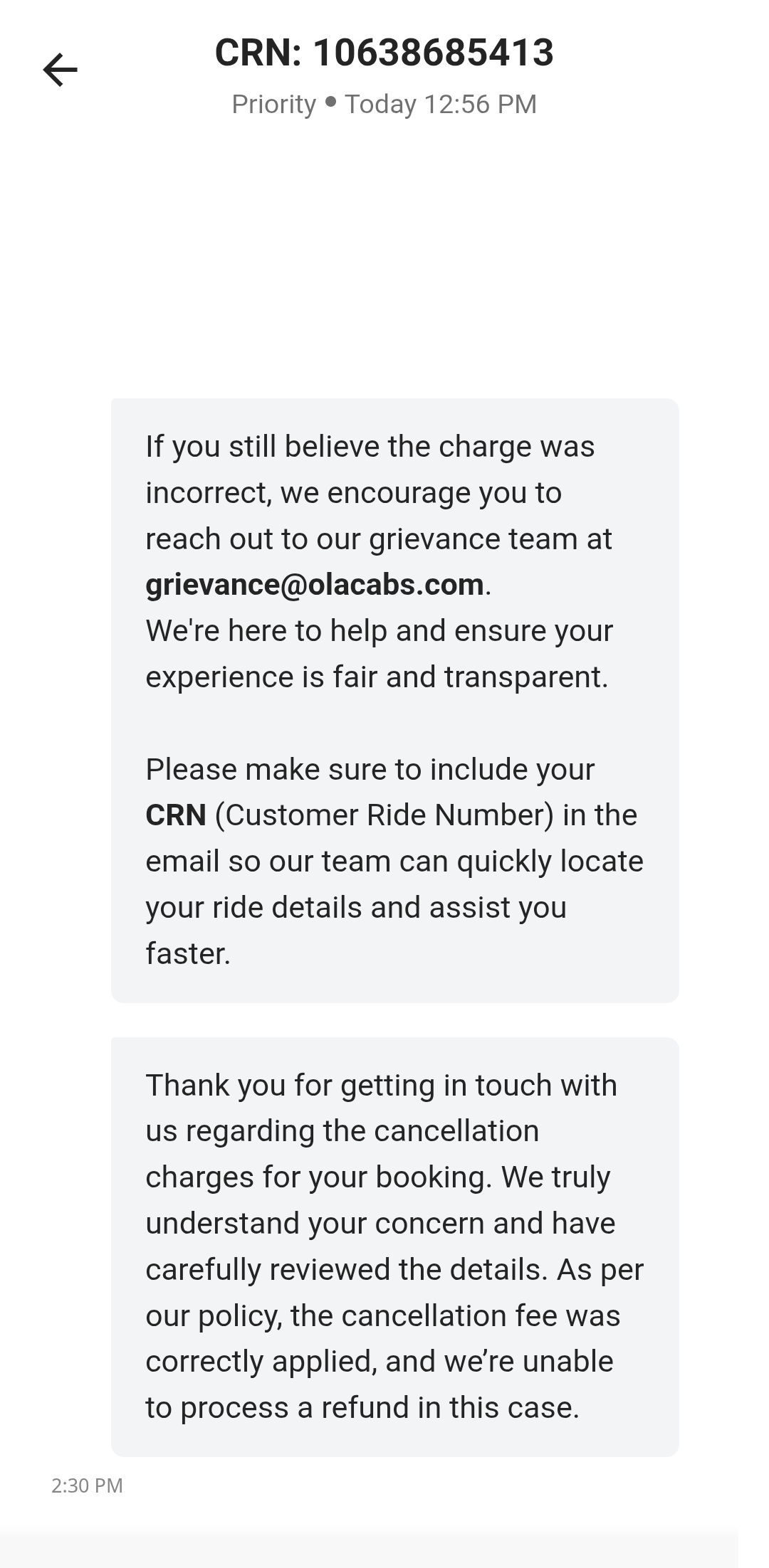 Ola customer care are involve in this scam with their driver and fools customer and charge cancellation charge. And we report complaint to customer care and they say we are sorry. And customer as to pay the cancellation charge.