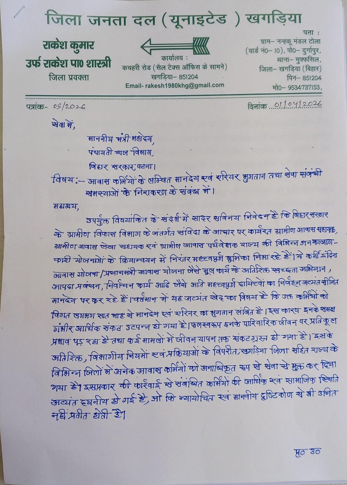 उन्होंने बताया कि ग्रामीण विकास विभाग के अंतर्गत संविदा पर कार्यरत ग्रामीण आवास सहायक, लेखा सहायक एवं पर्यवेक्षक विभिन्न जनकल्याणकारी योजनाओं—इंदिरा आवास योजना/प्रधानमंत्री आवास योजना, स्वच्छता अभियान, आपदा प्रबंधन एवं निर्वाचन कार्य—में अहम भूमिका निभा रहे हैं, बावजूद इसके उन्हें अत्यंत सीमित मानदेय मिल रहा है।