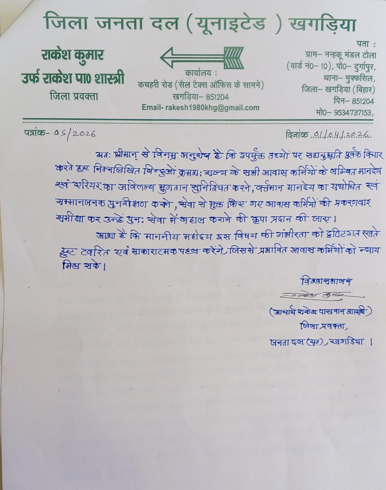 सबसे चिंताजनक स्थिति यह है कि इन कर्मियों का लगभग सात माह से मानदेय और एरियर लंबित है, जिससे उनके सामने गंभीर आर्थिक संकट उत्पन्न हो गया है। कई परिवारों का जीवन-यापन प्रभावित हो रहा है। साथ ही, नियमों के विपरीत कई कर्मियों को सेवा से हटाए जाने का मामला भी सामने आया है, जिसे उन्होंने अन्यायपूर्ण बताया। उन्होंने मंत्री से लंबित भुगतान शीघ्र जारी करने, मानदेय का पुनरीक्षण करने और सेवा से हटाए गए कर्मियों की पुनर्बहाली की मांग की।