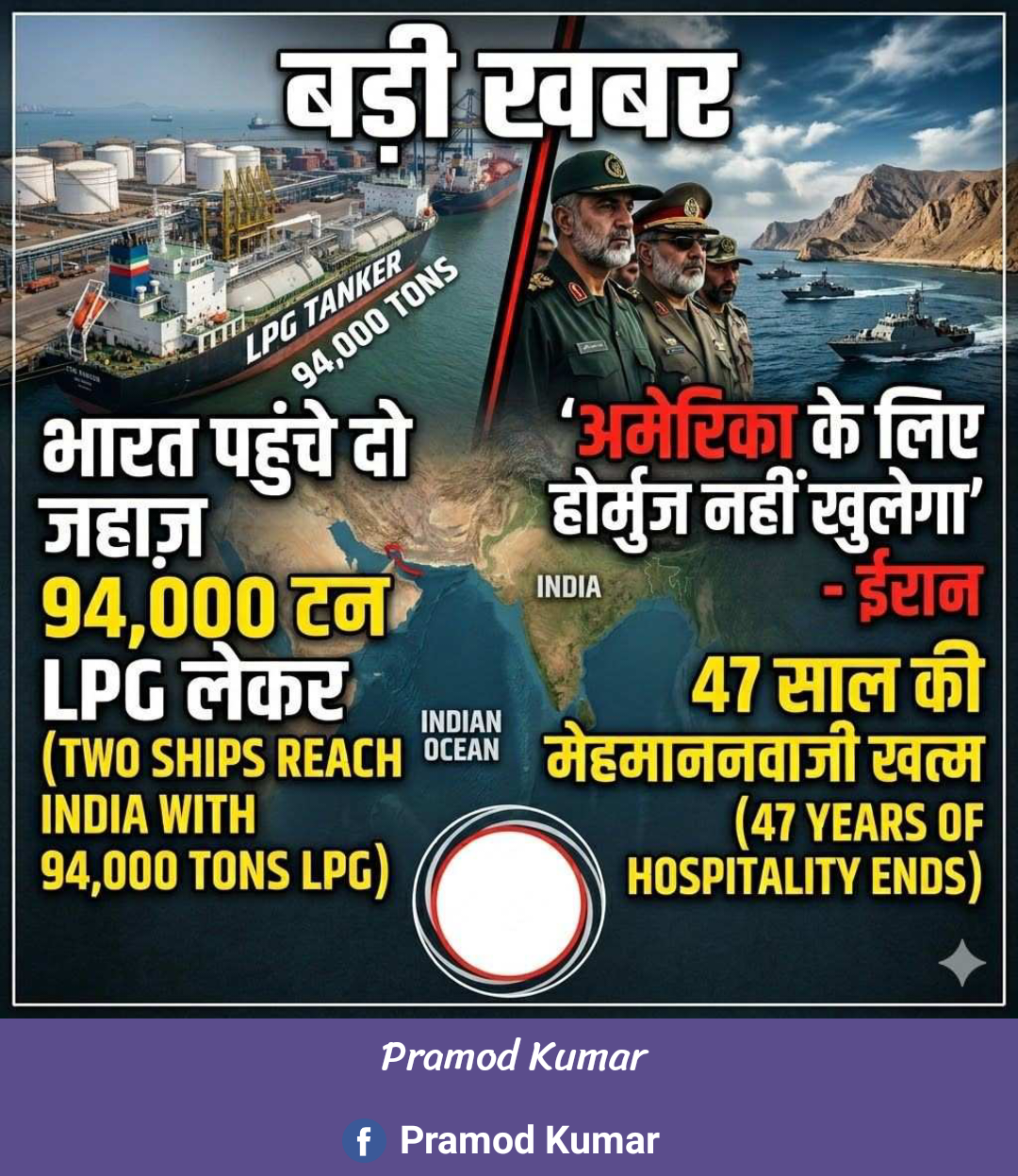 भारत पहुँचे 94,000 टन LPG से भरे दो जहाज़, ईरान ने अमेरिका को दी चेतावनी
