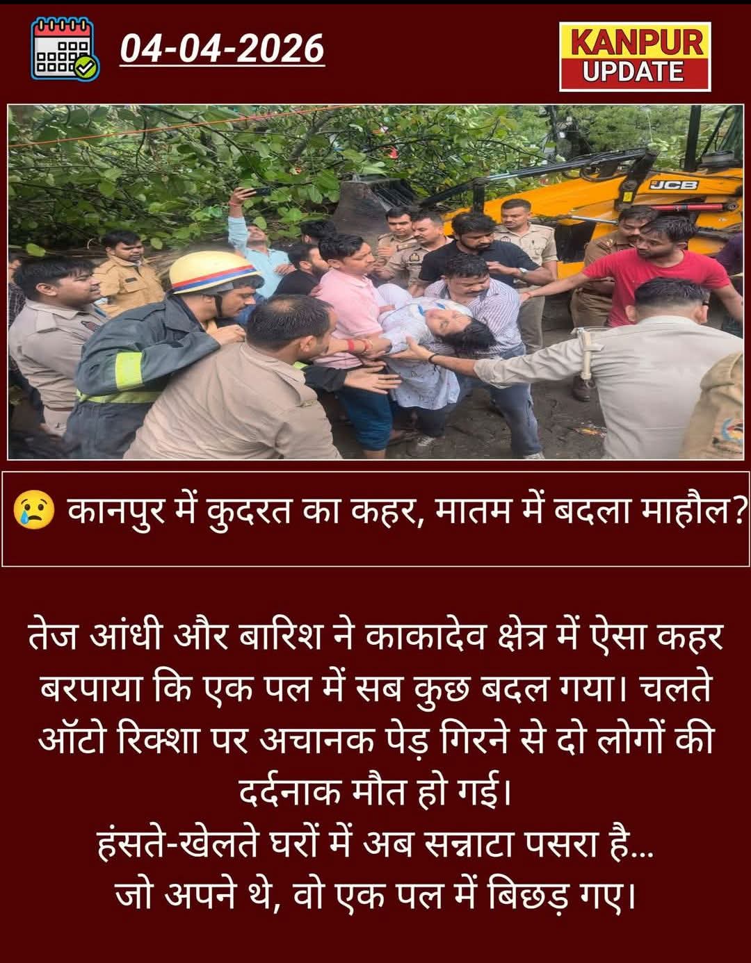 तेज आंधी और बारिश ने काकादेव क्षेत्र में ऐसा कहर बरपाया कि एक पल में सब कुछ बदल गया। चलते ऑटो रिक्शा पर अचानक पेड़ गिरने से दो लोगों की दर्दनाक मौत हो गई।