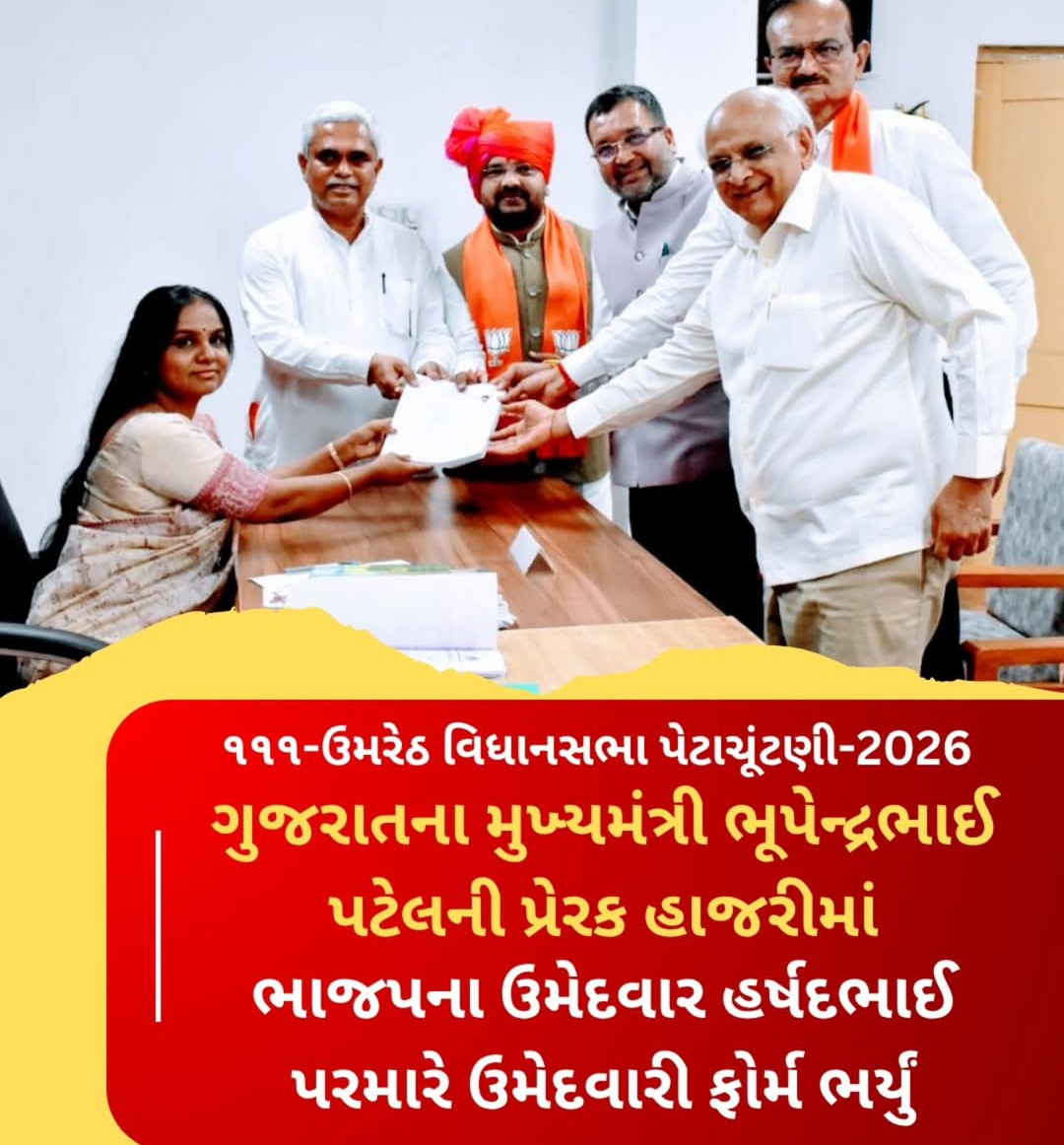 ઉમરેઠ વિધાનસભા પેટા ચૂંટણીમાં ભાજપના ઉમેદવાર હર્ષદભાઈ ગોવિંદભાઈ પરમારે ઉમેદવારી ફોર્મ ભર્યું.. .. તા. ૦૪/૦૪/૨૦૨૬