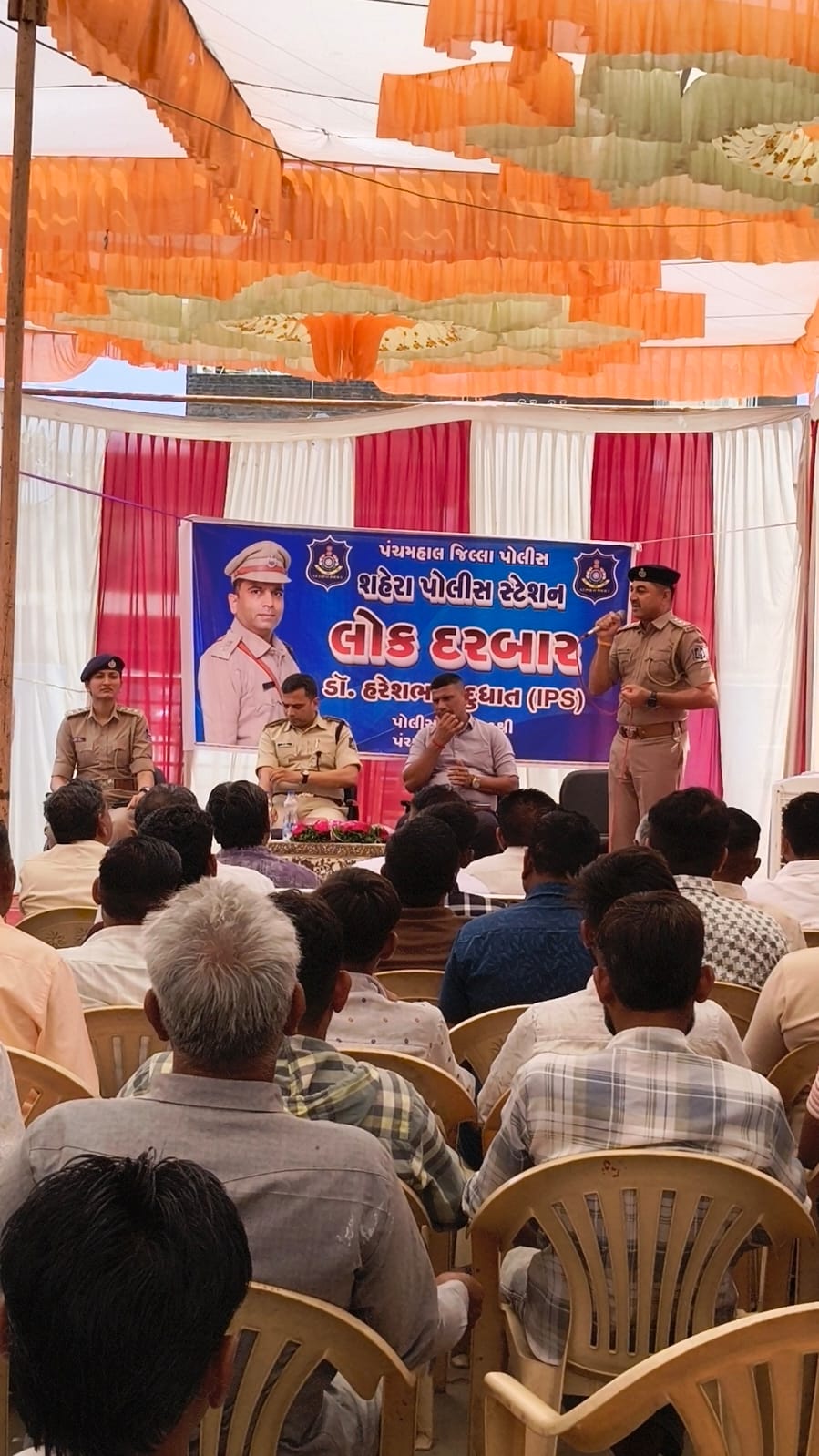પંચમહાલ જિલ્લાના શહેરા ખાતે પોલીસ અને જનતા વચ્ચે સંવાદ મજબૂત બનાવવા હેતુસર શહેરા પોલીસ મથકે લોકદરબારનું આયોજન કરવામાં આવ્યું હતું. આ કાર્યક્રમમાં જિલ્લા પોલીસ વડા ડૉ. હરેશભાઈ દુધાત તેમજ નાયબ પોલીસ અધિક્ષક બ્રિન્દા જાડેજા ઉપસ્થિત રહ્યા હતા. લોકદરબારમાં તાલુકાના વિવિધ ગામોના સરપંચો, આગેવાનો, વડીલો તથા મોટી સંખ્યામાં સ્થાનિક લોકો હાજર રહ્યા હતા. કાર્યક્રમ દરમિયાન આવનારી સ્થાનિક સ્વરાજની ચૂંટણીઓને ધ્યાનમાં રાખીને કાયદો વ્યવસ્થા જાળવવા અને શાંતિપૂર્ણ માહોલ જાળવવા અપીલ કરવામાં આવી હતી. આ ઉપરાંત સાયબર ક્રાઇમ, પોસ્કો કાયદો, માર્ગ અકસ્માતોની ઘટનાઓ તેમજ સુરક્ષા વીમા કવચ યોજના અંગે લોકોને વિગતવાર માહિતી આપવામાં આવી હતી. ચૂંટણી દરમિયાન અફવાઓથી દૂર રહેવા અને નાની નાની બાબતોને લઈને વિવાદ ન વધે તે માટે ખાસ સૂચના આપવામાં આવી હતી. લગ્ન તથા અન્ય શુભ પ્રસંગોમાં ગ્રામ્ય વિસ્તારોમાં ડીજેનો અવાજ નક્કી મર્યાદા કરતાં વધુ ન રાખવા તેમજ શક્ય હોય ત્યાં સુધી ડીજેનો ઉપયોગ ટાળવા અંગે પણ માર્ગદર્શન આપવામાં આવ્યું હતું. પોલીસ અધિકારીઓએ આચારસંહિતાનું પાલન કરવા તેમજ સમાજમાં રહેલા કુરિવાજો સામે જનજાગૃતિ ફેલાવવા લોકોને અપીલ કરી હતી. પોલીસ-જનતા સંવાદ દ્વારા કાયદો વ્યવસ્થા વધુ મજબૂત બનાવવાનો પ્રયાસ કરવામાં આવી રહ્યો છે. આ કાર્યક્રમમાં શહેરા પોલીસ મથકના પી.આઈ. એચ.વી. સીસરા (આહીર) સહિત પોલીસ સ્ટાફ પણ હાજર રહ્યો હતો.