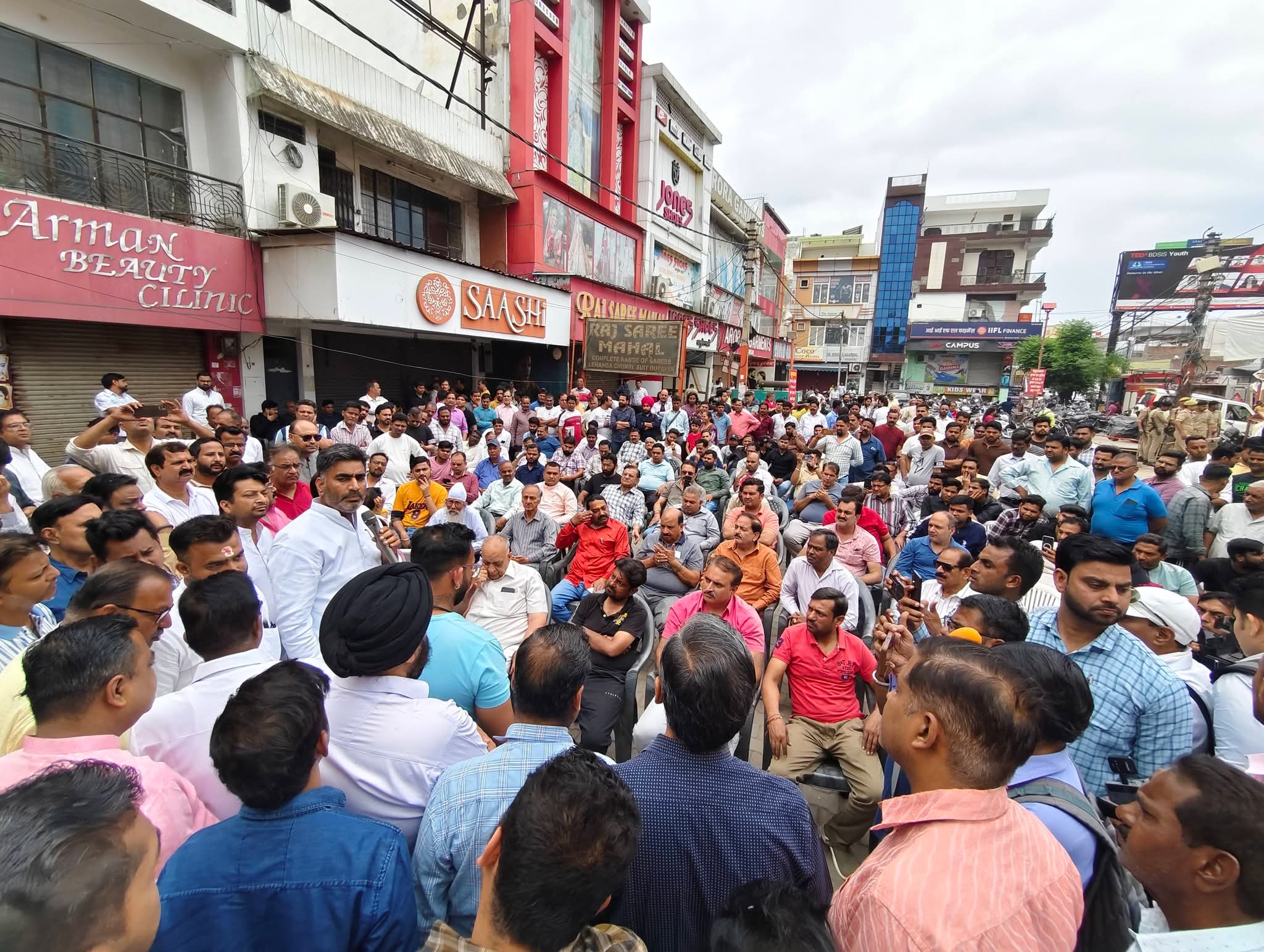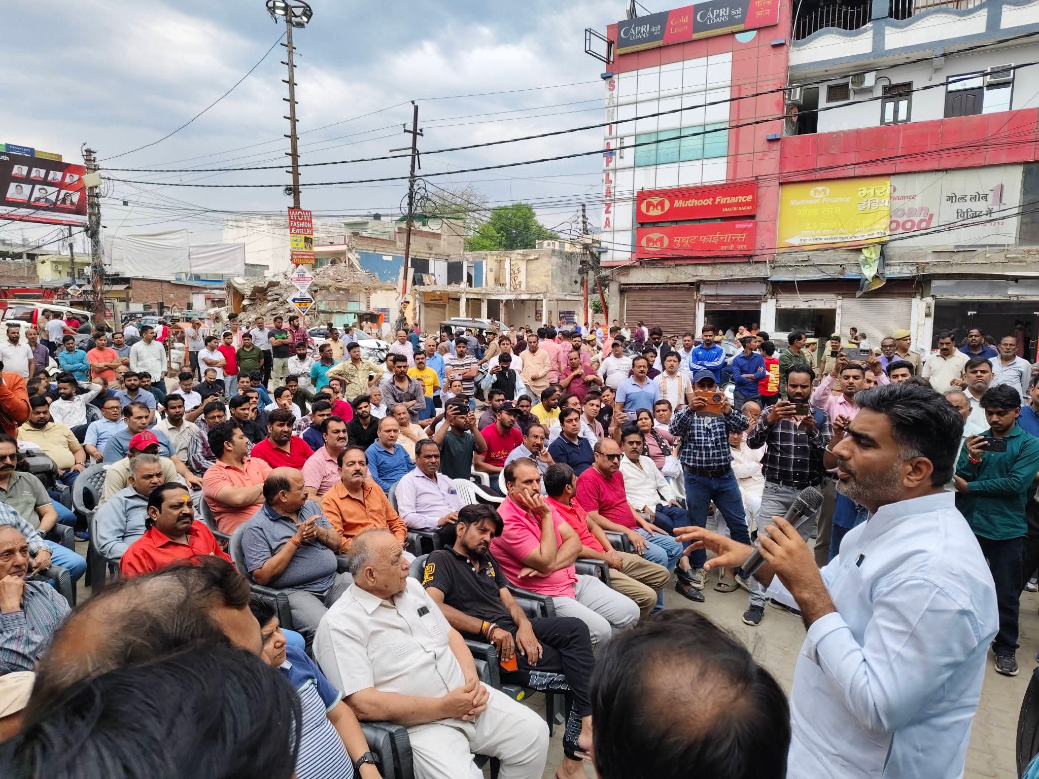 सेंट्रल मार्केट में ध्वस्तीकरण की कार्रवाई के विरोध में सड़क पर उतरे व्यापारियों के बीच पहुंचे सपा विधायक अतुल प्रधान