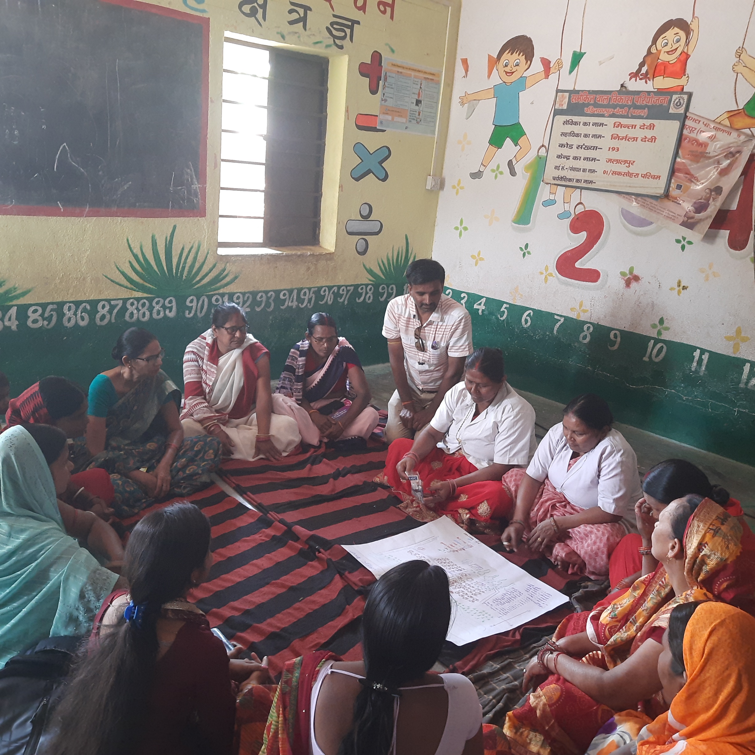 जिसके दौरान PCI के प्रखंड समन्यवयक नवकुंज कुमार के सहयोग से स्वास्थ्य उपकेंद्र सकसोहरा,बेलछी में पदस्थापित ANM, सुधा कुमारी व सुमिन्त्रा देवी,क्षेत्र की आशा पुष्पा कुमारी,आंगनवाड़ी सेविका मिन्ता देवी,सहायिका निर्मला देवी,AF अर्चना स्नेही,जीविका से MRP ब्यूटी कुमारी, CNRP नीलम कुमारी,मुस्कान ग्राम संगठन की CM शारदा देवी व विभा कुमारी,अध्यक्ष-शोभा देवी,सचिव-रंजना देवी,कोषाध्यक्ष-रीना देवी, समूह के सदस्यों के साथ साथ अन्य ग्रामीणों के द्वारा पूरे गांव का भ्रमण किया गया एवं इनकार लाभार्थियों के परिवारों से मिलकर बच्चों के नियमित टीकाकरणके लिये प्रेरित किया गया।गांव का भ्रमण आंगनबाड़ी केंद्र से प्रारम्भ किया गया व शिवमंदिर होकर पानी टंकी होते हुए पूरे गांव का भ्रमण करते हुये पुनः आंगनवाड़ी केंद्र पर सभी लोग एकत्रित हुये एवं वहां पर भ्रमण के अनुसार एवं शामिल लोगों के द्वारा चार्ट पेपर पर सामाजिक मानचित्रण तैयार किया गया।