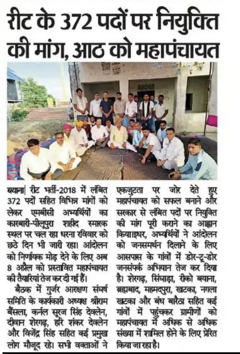 राजस्थान भरतपुर 8 अप्रैल गुर्जर महा पंचायत स्थगित