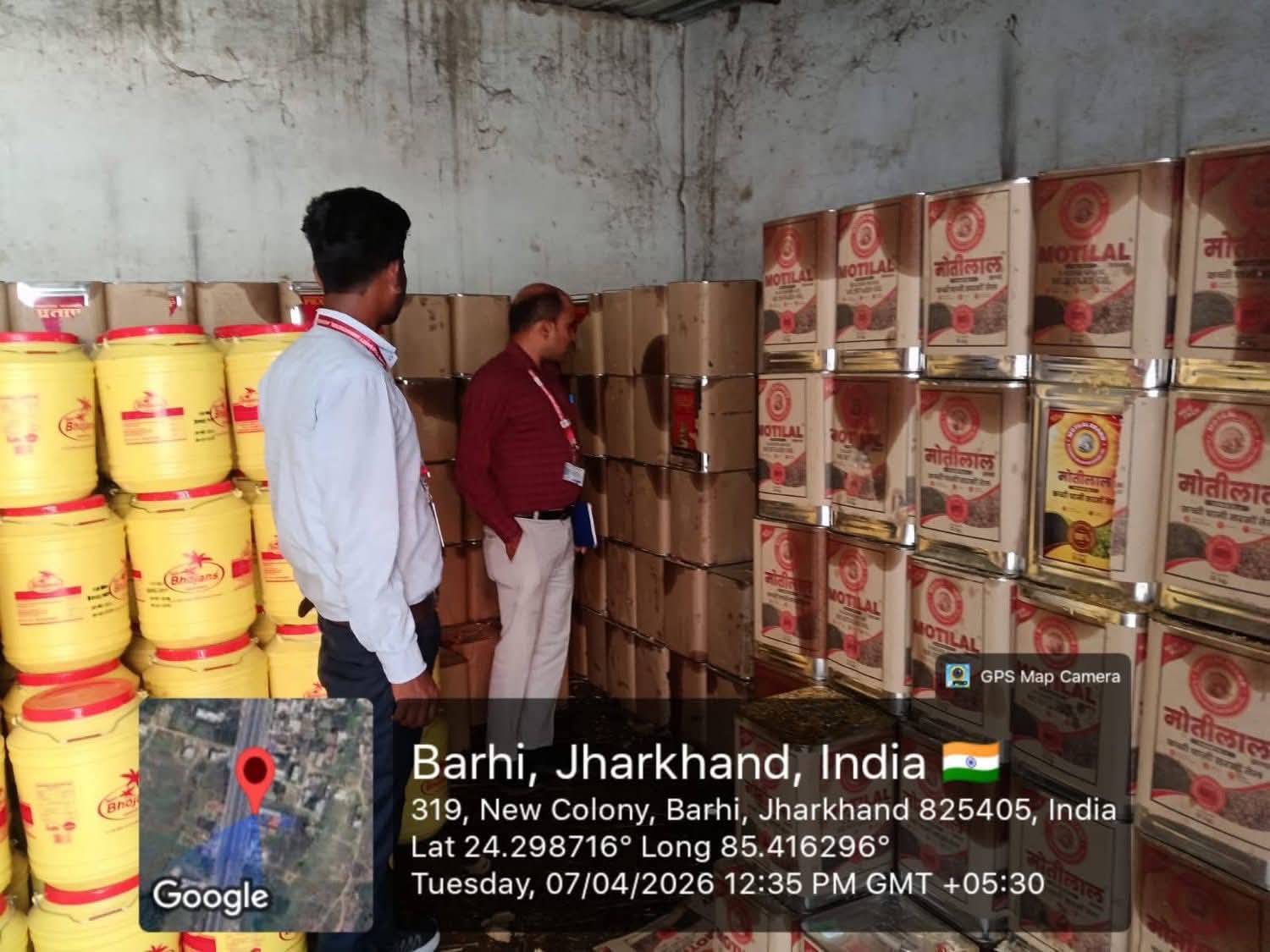 हजारीबाग (बरही): जिला प्रशासन की मुस्तैदी से बरही में मिलावटी और असुरक्षित खाद्य पदार्थों के खिलाफ बड़ी कार्रवाई की गई है। मंगलवार को खाद्य सुरक्षा विभाग की टीम ने बरही स्थित 'मां जगदंबा ट्रेडिंग' नामक प्रतिष्ठान में औचक छापेमारी की। इस दौरान भारी मात्रा में एक्सपायरी सरसों तेल बरामद किया गया, जिसे विभाग ने तुरंत सील कर दिया है।