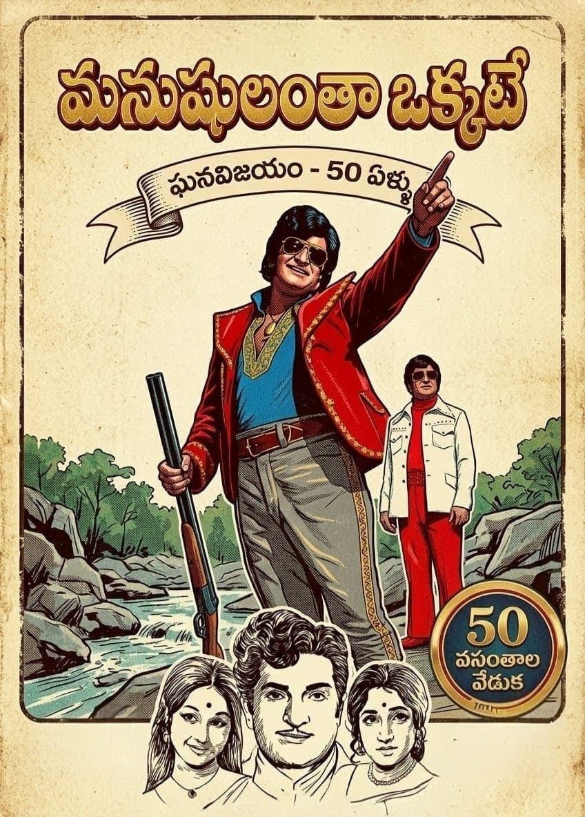 ఎవడిదిరా ఈ భూమి? ఎవ్వడురా భూస్వామి?దున్నేవాడిదె భూమి... పండించేవాడే ఆసామి’. తీవ్రమైన ఆ ప్రశ్నలు... తెగువతో కవి కలం ఇచ్చిన ఆ బలమైన ఆ సమాధానాలు వింటే – ఇప్పుడంటే మాదాల రంగారావు, ఆర్‌. నారాయణమూర్తి తరహా ఎర్ర సినిమాలు గుర్తొస్తాయి. కానీ, వాటికన్నా ముందే ఓ స్టార్‌ సినిమా... వెండితెరపై విప్లవం పండించిందని తెలుసా? ఎన్టీ రామారావు లాంటి స్టార్‌ హీరో, వరుస విజయాల మీదున్న దాసరి నారాయణరావు లాంటి దర్శకుడు కలసి నాలుగున్నర దశాబ్దాల క్రితమే చేసిన సమసమాజ నినాదం ‘మనుషులంతా ఒక్కటే’ (1976 ఏప్రిల్‌ 7). ఆ సినిమాకు 50 వసంతాలు.
