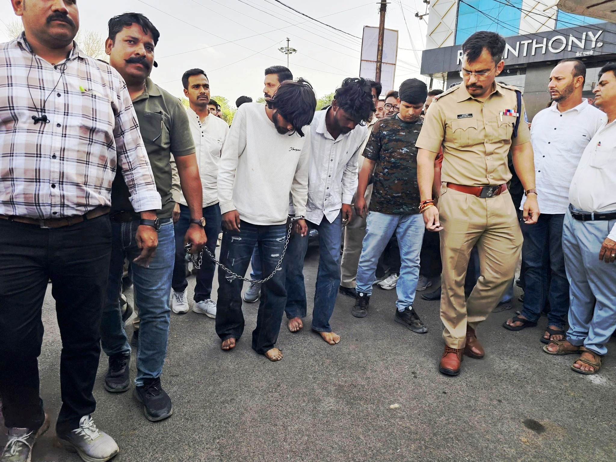 पुलिस ने हत्या के दो आरोपियों का चौराहा पर जुलसु निकाला