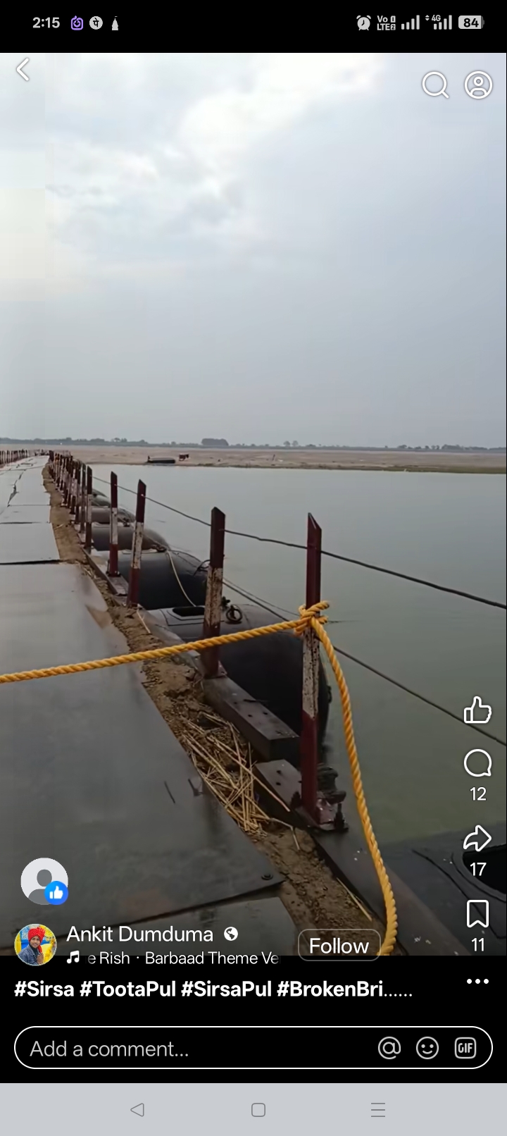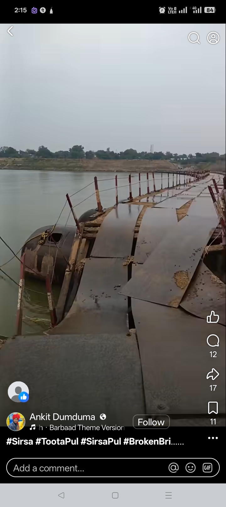 Sirsa Ghat per PWD laparvahi se mangalwar raat ko Aandhi mein pul tuta