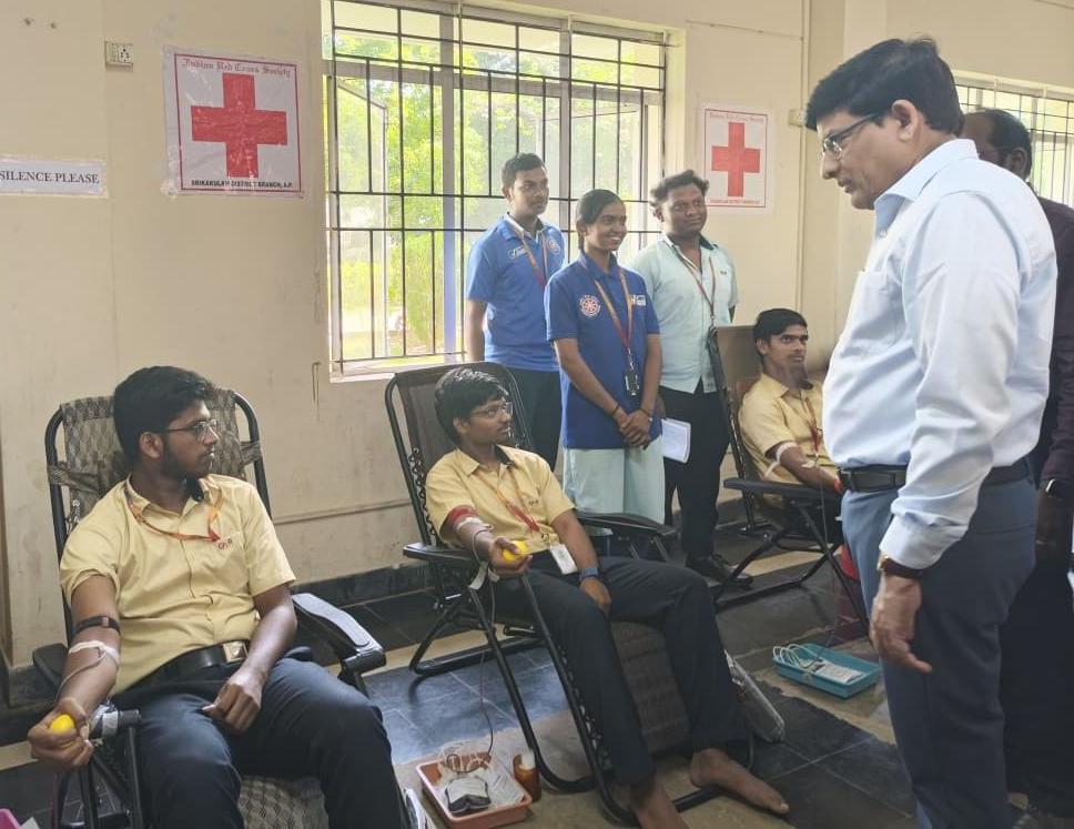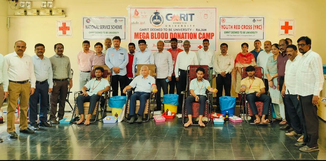 April 9: A mega blood donation camp organized at GMR Institute of Technology (GMRIT), Deemed-to-be University, was successfully conducted on Thursday. The camp was organized by the NSS Unit and Youth Red Cross Unit in collaboration with the Indian Red Cross Society, Srikakulam and Vizianagaram district branches, along with the Rajam Red Cross sub-branch.