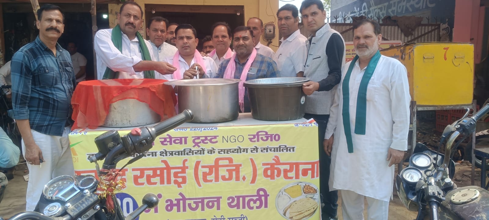 कैराना (शामली): "सेवा ही जीवन है" के संकल्प के साथ आज कैराना नगर के पब्लिक इंटर कॉलेज के सामने 'आनंद रसोई' (पंजीकृत) का विधिवत शुभारंभ किया गया। आनंद सेवा ट्रस्ट (NGO) द्वारा संचालित इस रसोई का उद्देश्य क्षेत्र के जरूरतमंद लोगों को बहुत ही कम दाम में पौष्टिक भोजन उपलब्ध कराना है।मुख्य अतिथियों ने भंडारे का आयोजन अपने हाथों से खाना परोसा मुख्य अतिथि चौधरी गुरदीप सिंह जिला सचिव चौधरी इंतजार प्रधान ब्लॉक अध्यक्ष भाकियू ने संयुक्त रूप से किया। उनके साथ भारतीय किसान यूनियन टिकैत के चौधरी इमरान जिला सचिव फैज़ान अहमद ब्लॉक उपाध्यक्ष नवाब अली मीडिया प्रभारी मौहम्मद अहमद खान आमिर खान डाक्टर जावेद भी मौजूद रहे। अतिथियों का संस्थापक आनंद सक्सेना जी ने पटका एवं फूल मालाए पहनाकर स्वागत किया, सभी ने अपने हाथों से लोगों को खाना परोसकर इस पुनीत कार्य का हिस्सा बने संस्थापक अध्यक्ष रोहित आनंद सक्सेना ने बताया कि उनका लक्ष्य है कि शहर में कोई भी गरीब व्यक्ति भूखा न सोए। इस अवसर पर कोषाध्यक्ष प्रवीण कुमार, सचिव योगेंद्र शर्मा, जिलाध्यक्ष विपिन ठेकेदार और रसोई मैनेजर अजय शर्मा सहित संस्था के अन्य सदस्य मौजूद रहे।
