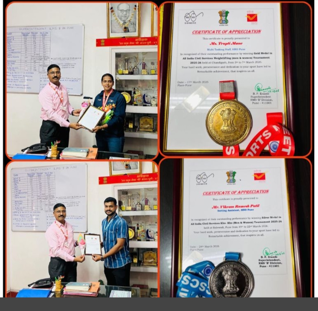 खो-खो स्पर्धेत विक्रम पाटील (सॉर्टिंग असिस्टंट, आर.एम.एस. 'ब' मंडळ, पुणे) यांनीही उत्कृष्ट खेळाचे प्रदर्शन करत रौप्यपदक मिळवले. त्यांच्या चपळाई, वेग आणि संघभावनेचे सर्व स्तरांतून कौतुक होत आहे. पुण्याच्या या यशस्वी खेळाडूंमुळे भारतीय डाक विभागाचा क्रीडा क्षेत्रातील दबदबा पुन्हा एकदा अधोरेखित झाला आहे.