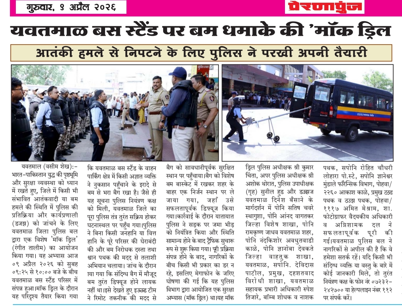 यवतमाल बस स्टैंड पर बम धमाके की "मॉक ड्रिल"
