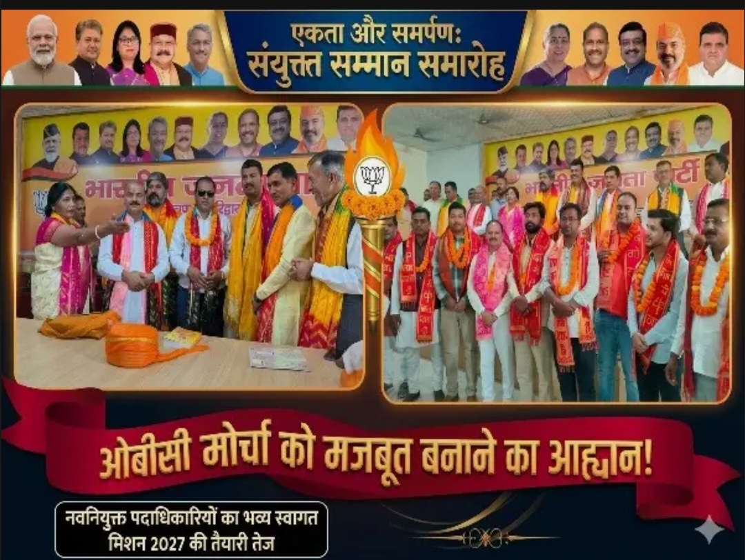 हरिद्वार -भारतीय जनता पार्टी के जिला कार्यालय जगजीतपुर में आयोजित सम्मान समारोह मैं ओबीसी मोर्चा के नियुक्त जिला पदाधिकारियों और मंडल अध्यक्षों का पका वे फूलों की माला पहनाकर स्वागत किया। कार्यक्रम में प्रदेश के अध्यक्ष नेत्रपाल मौर्य ने संगठन को मजबूत कर मिशन- 2027 जताने का आह्वान किया।