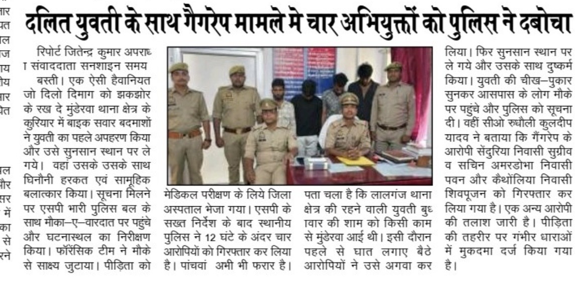 गैंगरेप की बड़ी वारदात बस्ती जिले के लालगंज थाना के अंतर गत