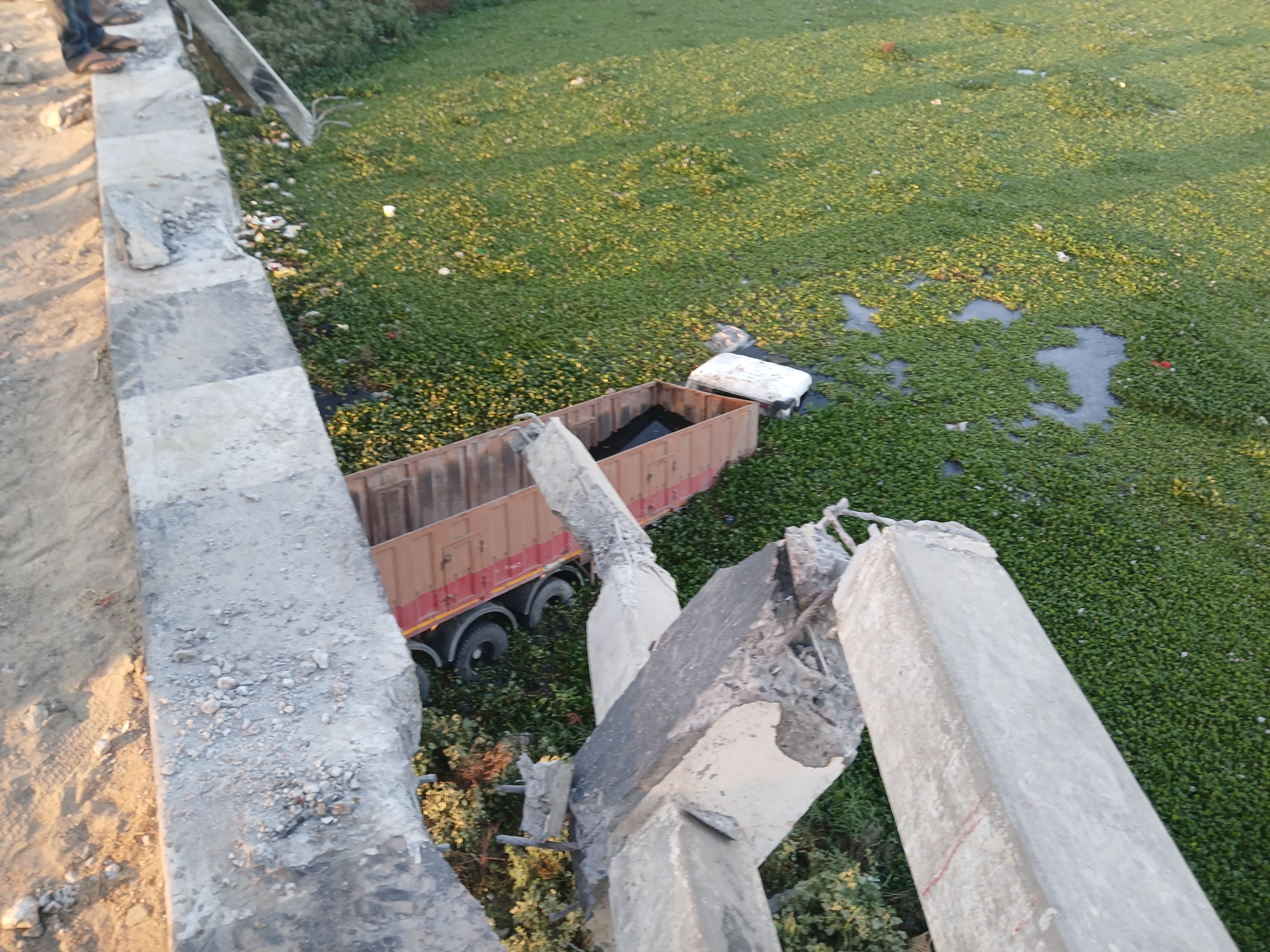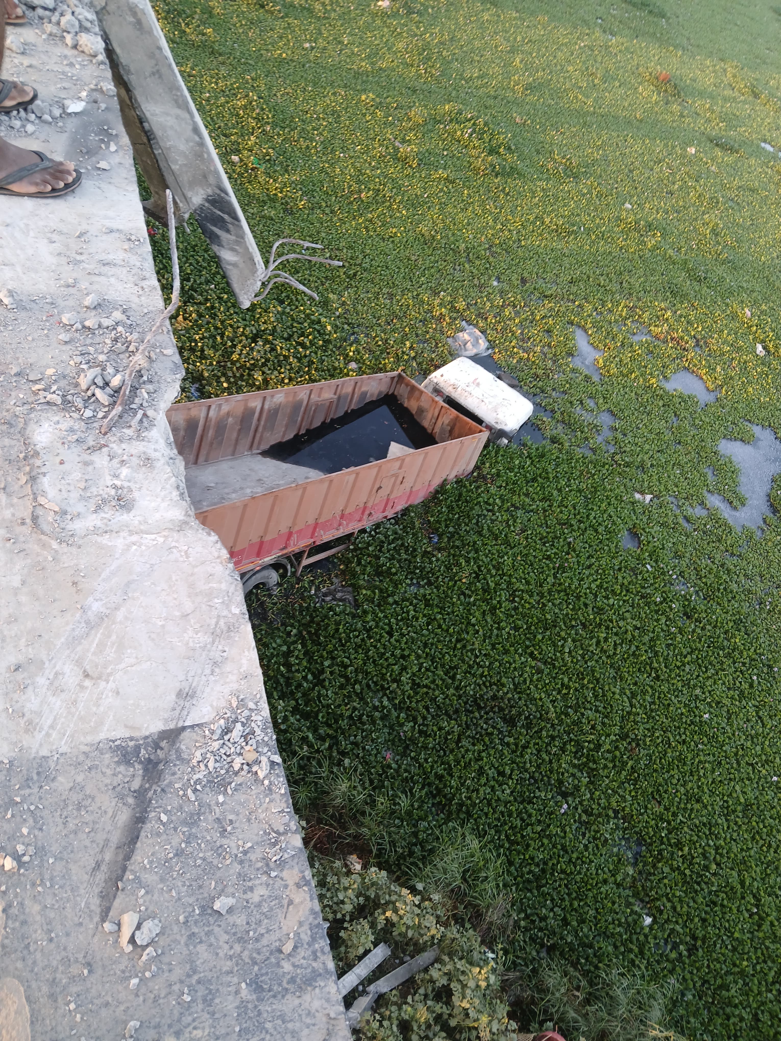 उनवाल-खजनी थाना क्षेत्र में छताई पुल तोड़ कर एक टेलर आमी नदी में समाया हुआ दिखा। चश्मदीदों की माने तो यह घटना भोर में 3से 4 के बीच की बताई जा रही है कोई जानमाल की घटना घटी है या नही यह कहना अभी मुश्किल है क्योंकि टेलर पूरी तरह नदी में समा गया हैं उसके अगल-बगल जलकुंभी घेरे हुए हैं बगल में एक हेलमेट भी तैरता हुआ दिख रहा है घटना के वक्त टेलर में कितने लोग थे कब और कैसे क्या हुआ ,चालक सुरक्षित है या नही यह अभी तक का एक बड़ा सवाल है ?